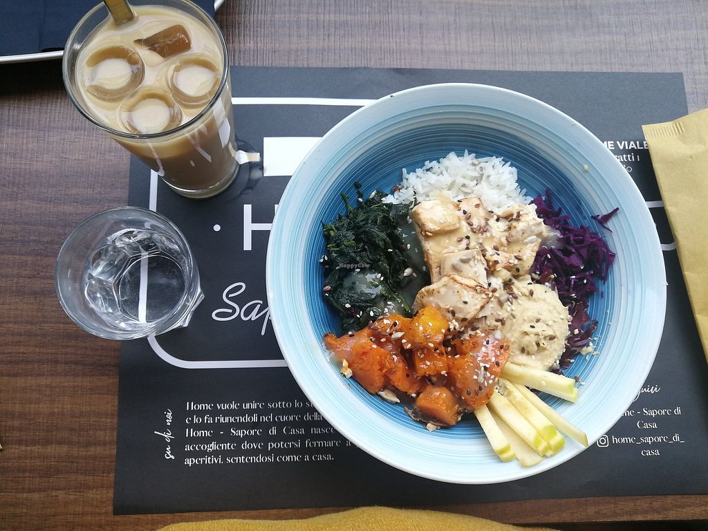 Vegan bowl und iced vanilla coffee