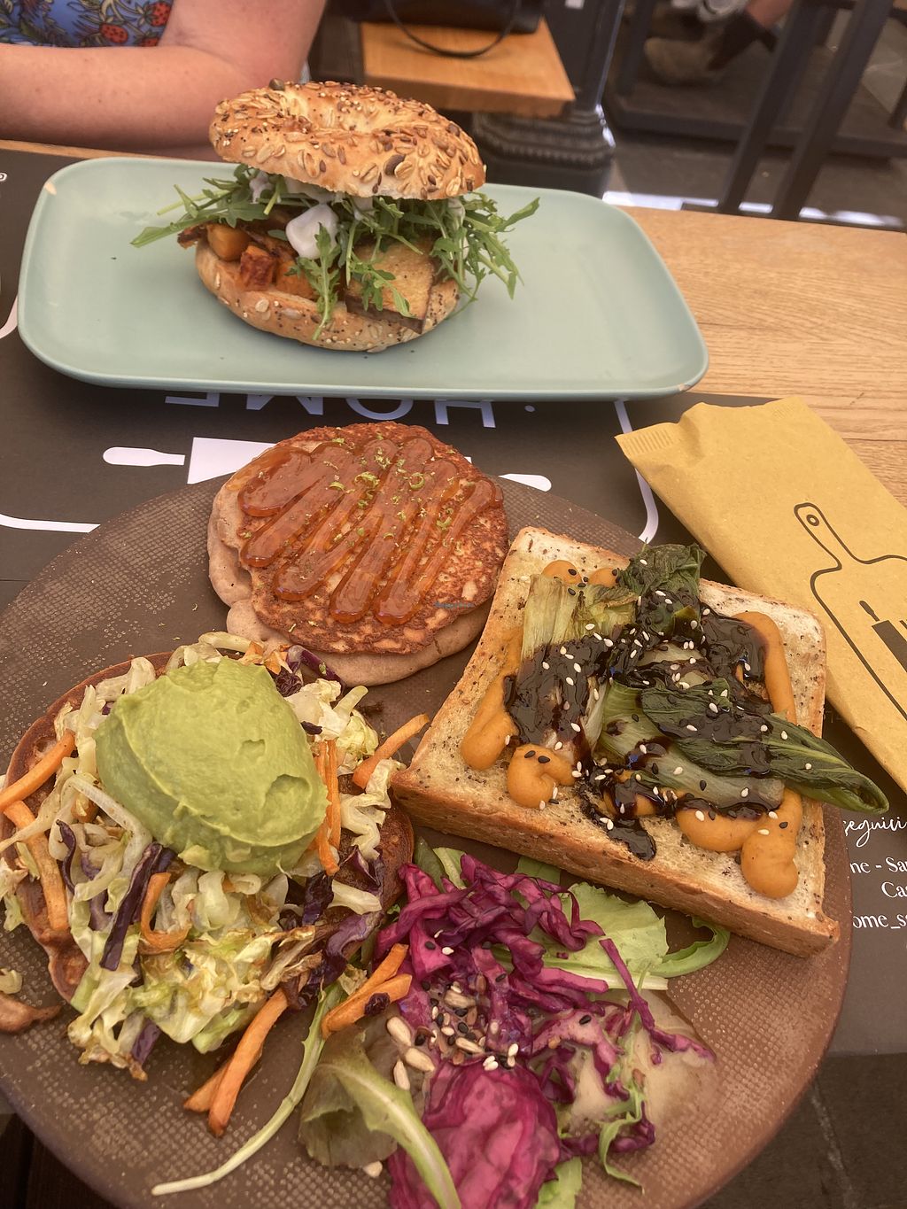 Vegan Brunch (toast with tempeh and avocado on top, toast with apple-f…