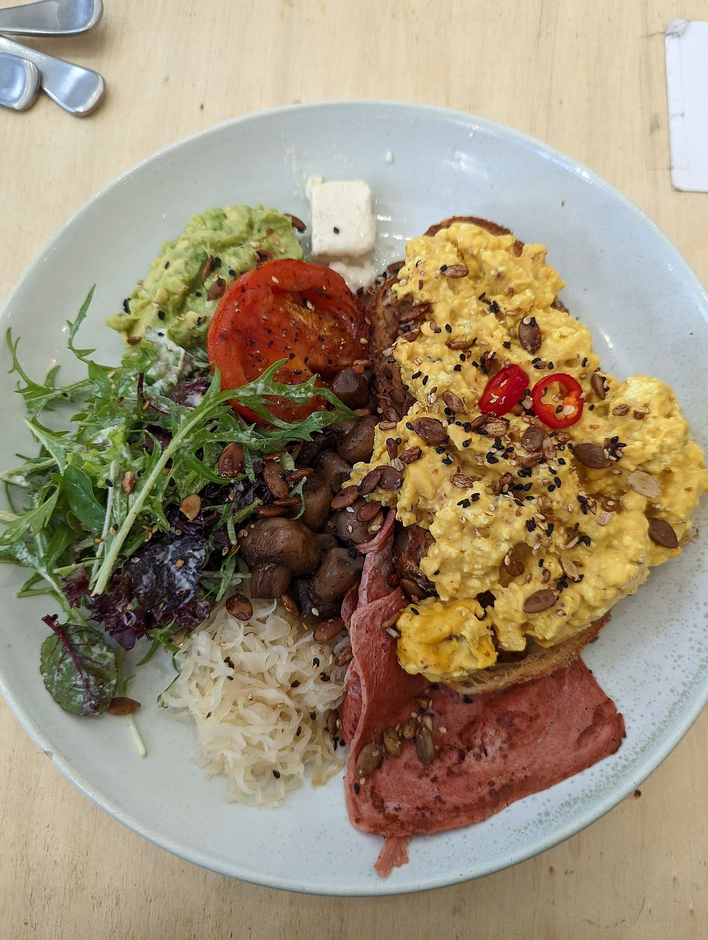 Read moreThe tofu scramble had a runny, egg-like texture, and the addition of chilli and pumpkin seeds worked an absolute treat!