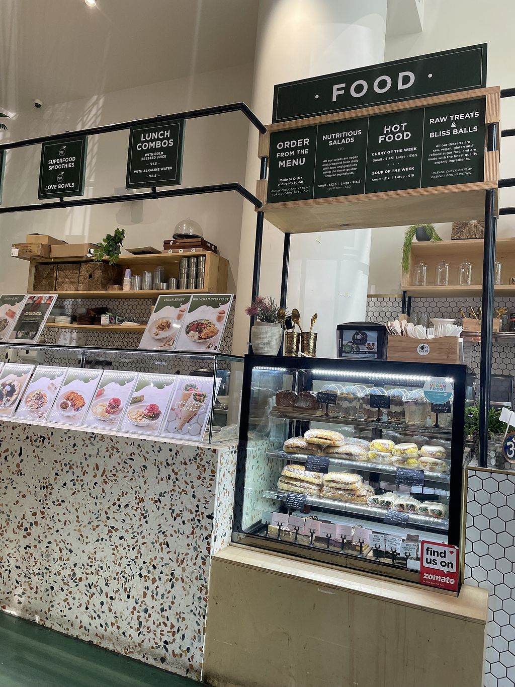Was looking forward to trying this very well rated vegan cafe this morning for brunch. They have an extensive menu so there’s something here for everyone - nutritious salads, burgers, curries, Buddha bowls, wraps, soups, pastries, smoothies and smoothie bowls and an extensive selection of delicious cold pressed juices. They also have a dessert cabinet!