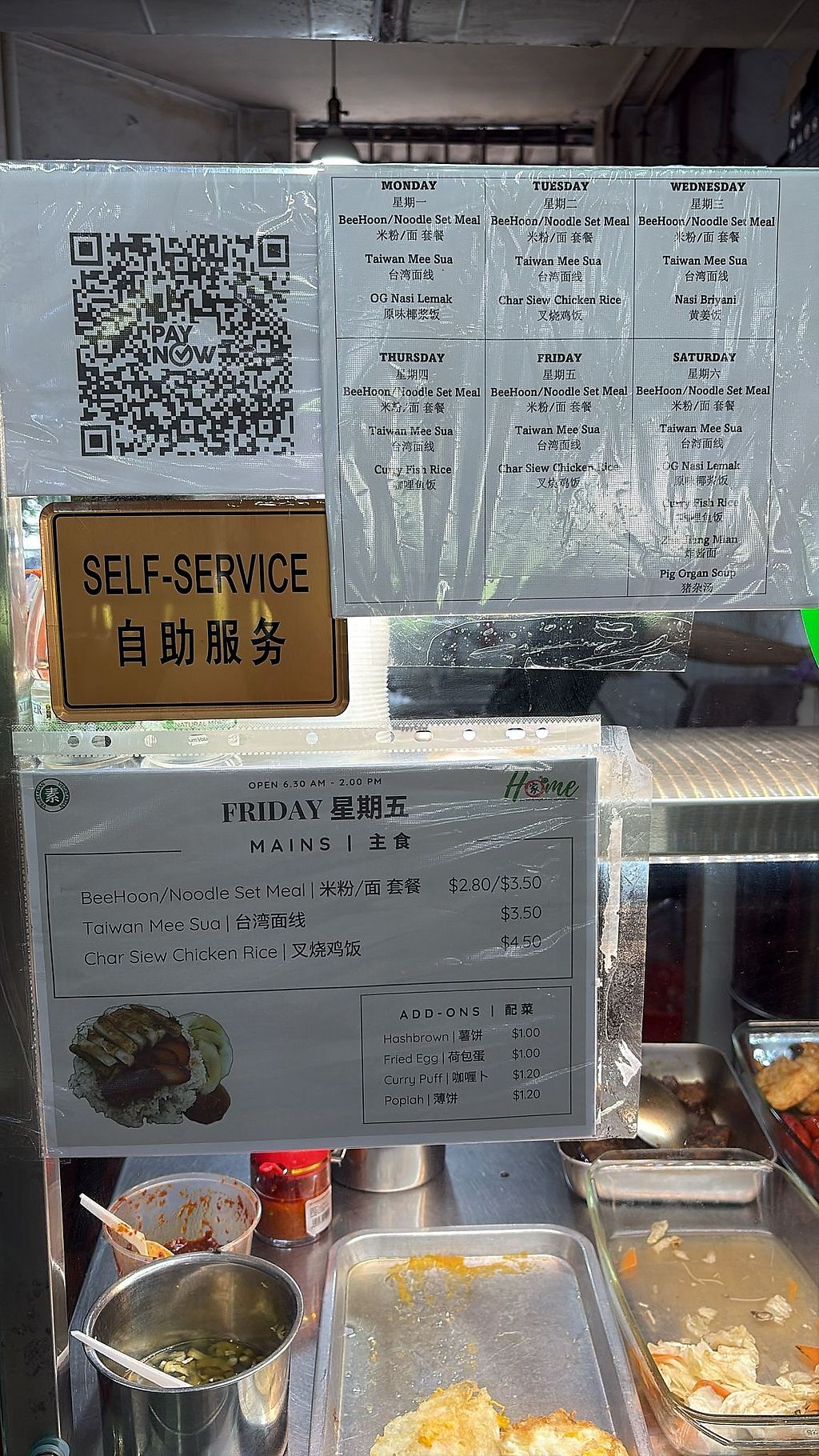 Allium-free vegetarian coffeeshop stall. Vegan options are available and include Taiwan Mee Sua (a thickened wheat vermicelli soup), Mala Tofu (a spicy Sichuan-style tofu dish), and Beehoon Se (rice vermicelli noodles). Customers should enquire with staff for details. Open Mon-Sat 6:30am-2:00pm.