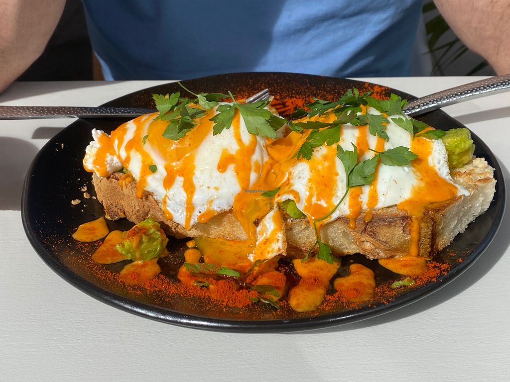 Perfect lunch place that has a lot of vegetarian and vegan options. Very laid back atmosphere, friendly owners and great food. My friend had the vegan zucchini dish and I had the red bell pepper dish which was vegetarian just because of a yoghurt sauce, so easy to veganise. Ended with a delicious vegan croissant. Go there if you're visiting Gran Canaria!