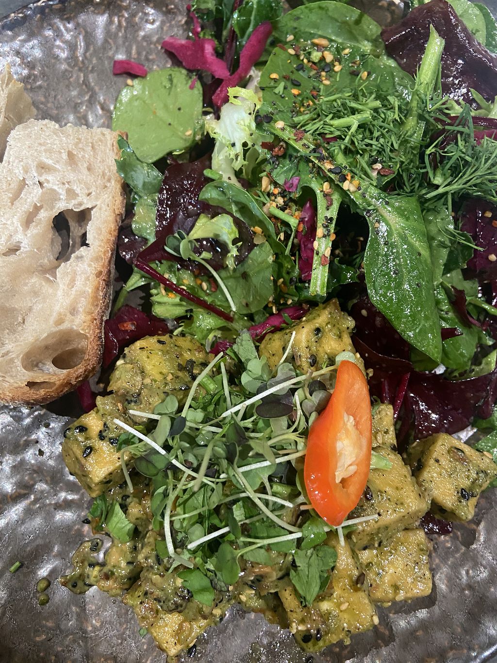 Chain healthy restaurant with a lot of vegan options. I shared a good hummus and falafel plate, then I created my own meal with avocado, tofu, smashed potatoes and vegetables. Fresh ingredients, colourful meal, great tasting.