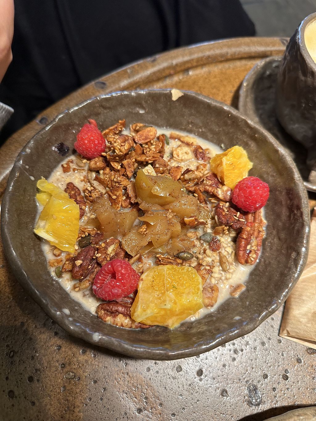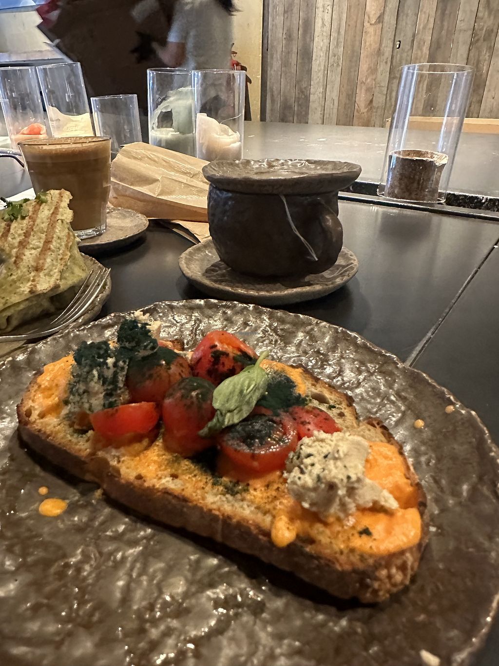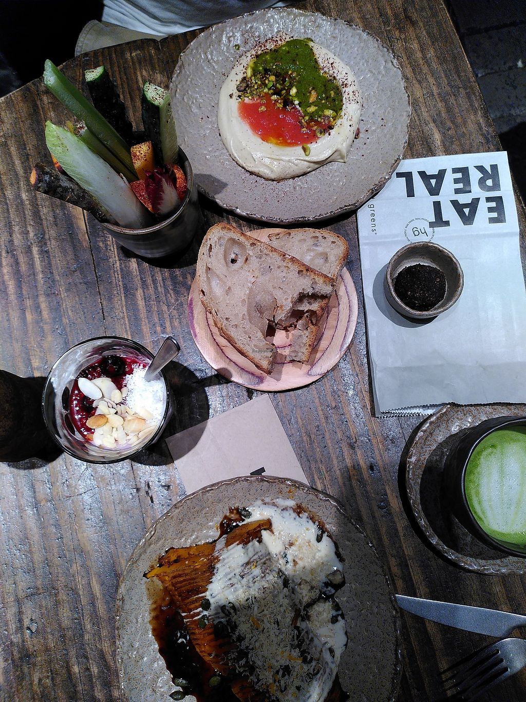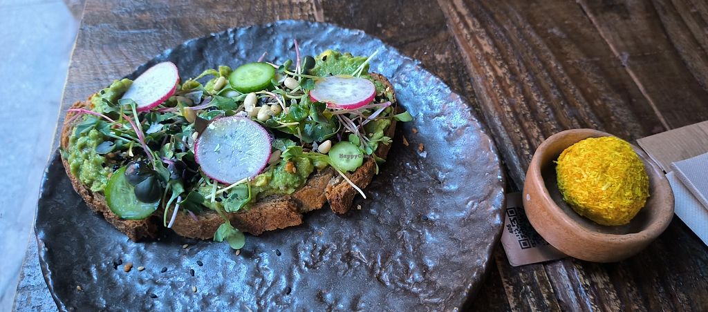 This is a cool place to have a healthy breakfast, which is hard to come by. They have a large menu but we're unfortunately out of avocado when we were there so couldn't sample the avocado toast, which sounded lovely. We ordered overnight oats, which were really filling, eggs benedict, which was also delicious. We also ordered a tomato toast with tofu and spirulina. The place looks lovely inside and the open kitchen is really interesting. Good coffee too.
