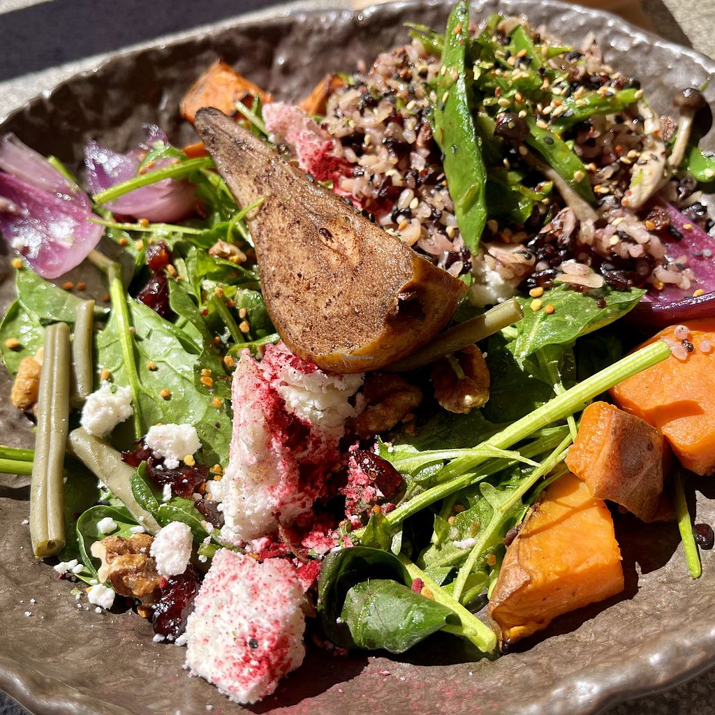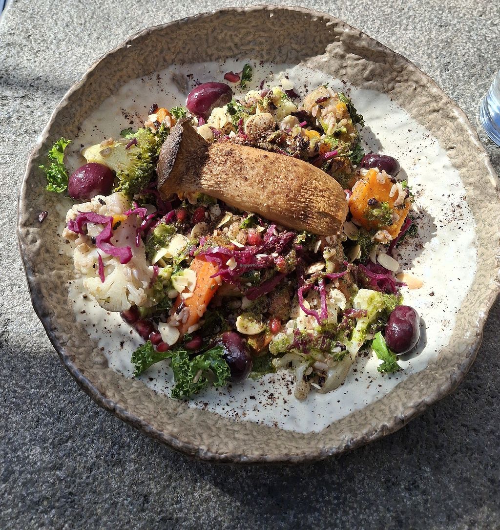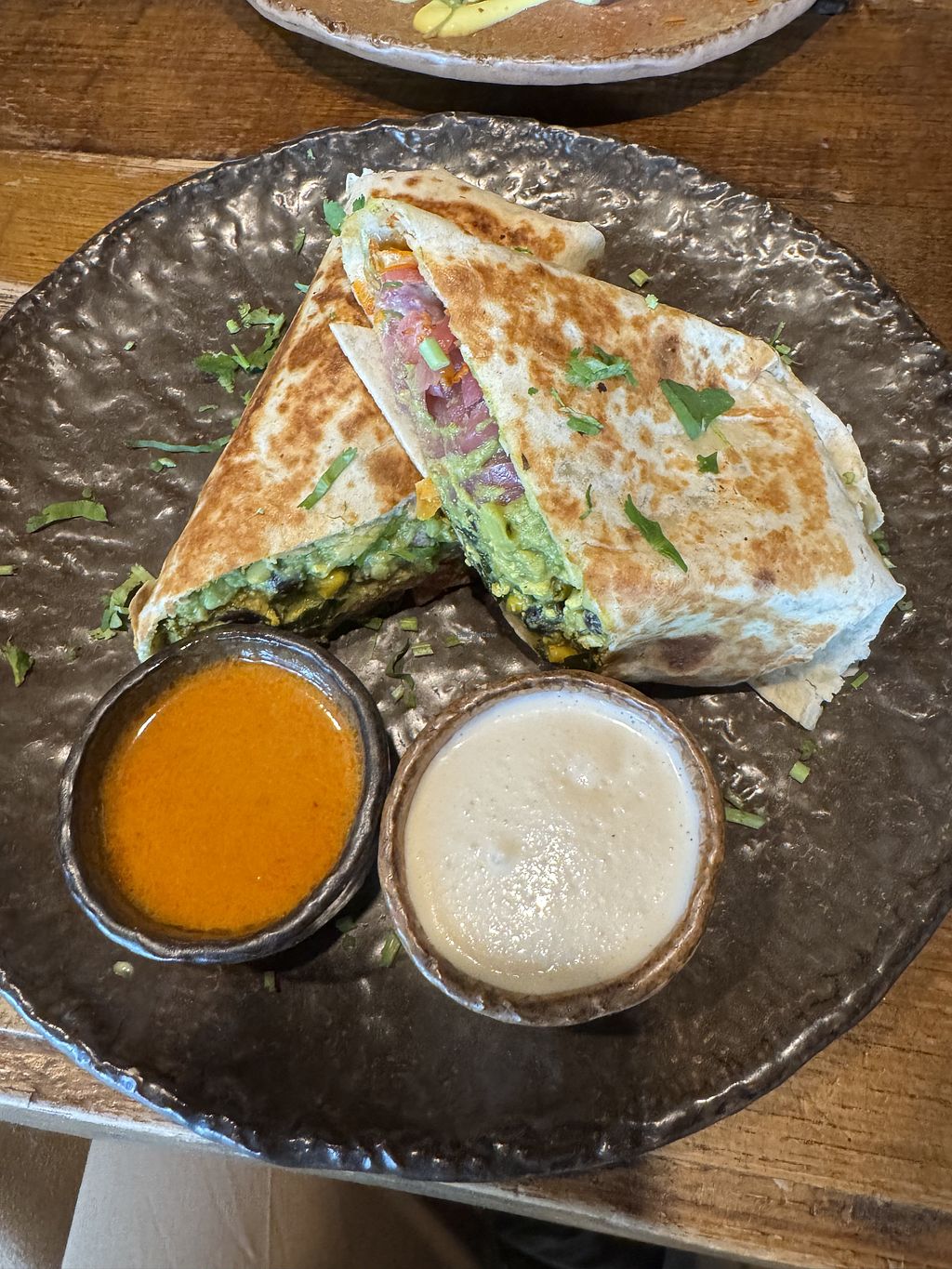 Sweet potato fries with beetroot ketchup and vegan sour cream