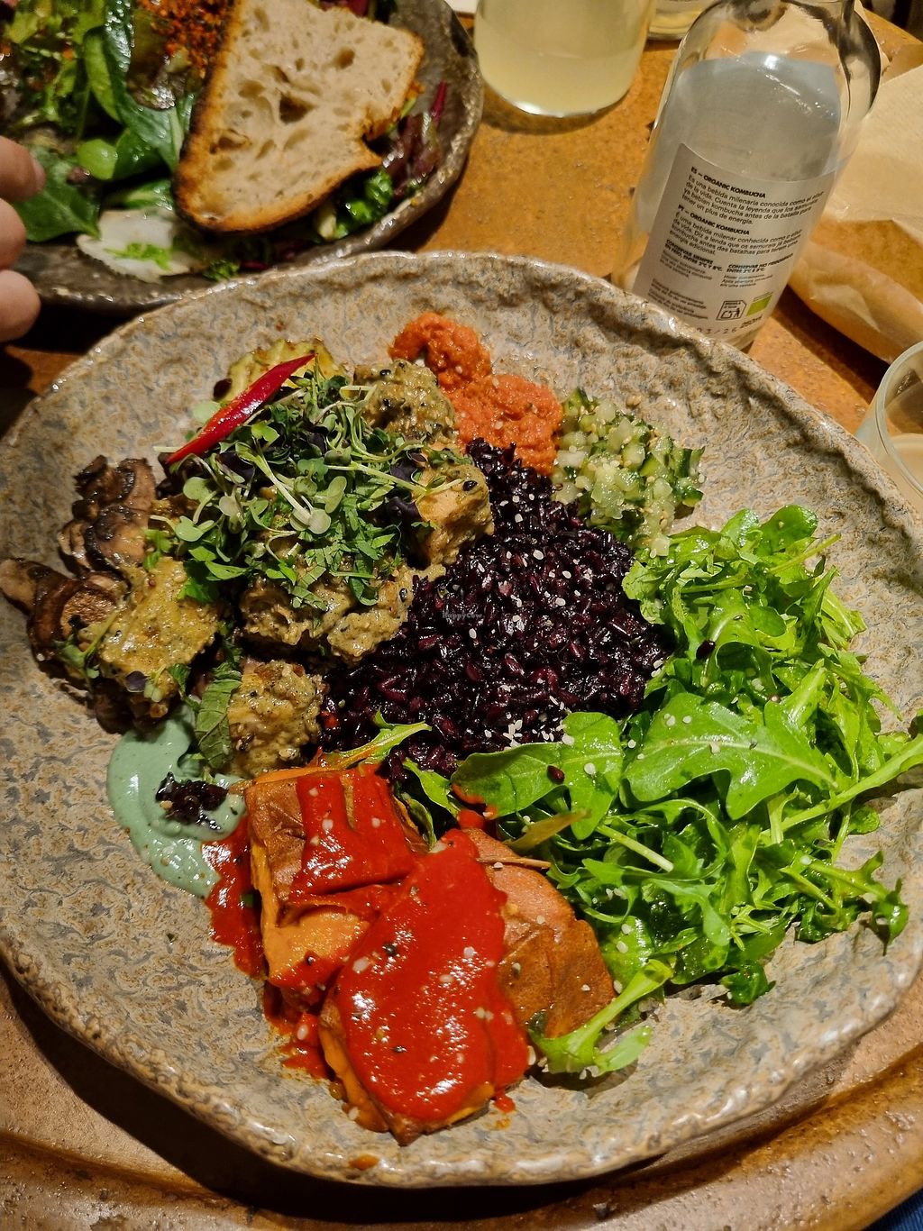 La comida estupenda pero deberían categorizar mejor los ingredientes veganos que tienen. Tienen solamente como dos proteínas veganas de tofu, aunque de muy buena calidad. El humus está increíble.