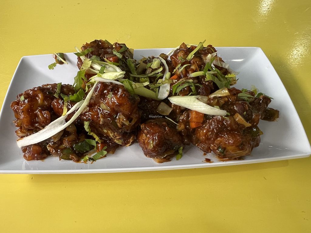 Vegetarian restaurant serving Indian cuisine with clearly labeled menu. Example vegan offerings include gobi manchurian, vegetable fried rice, vegetable noodles, dosas and more. Open Mon-Thu 11:00am-10:00pm, Fri-Sun 11:00am-10:30pm, Fri-Sat 11:00am-10:30pm.