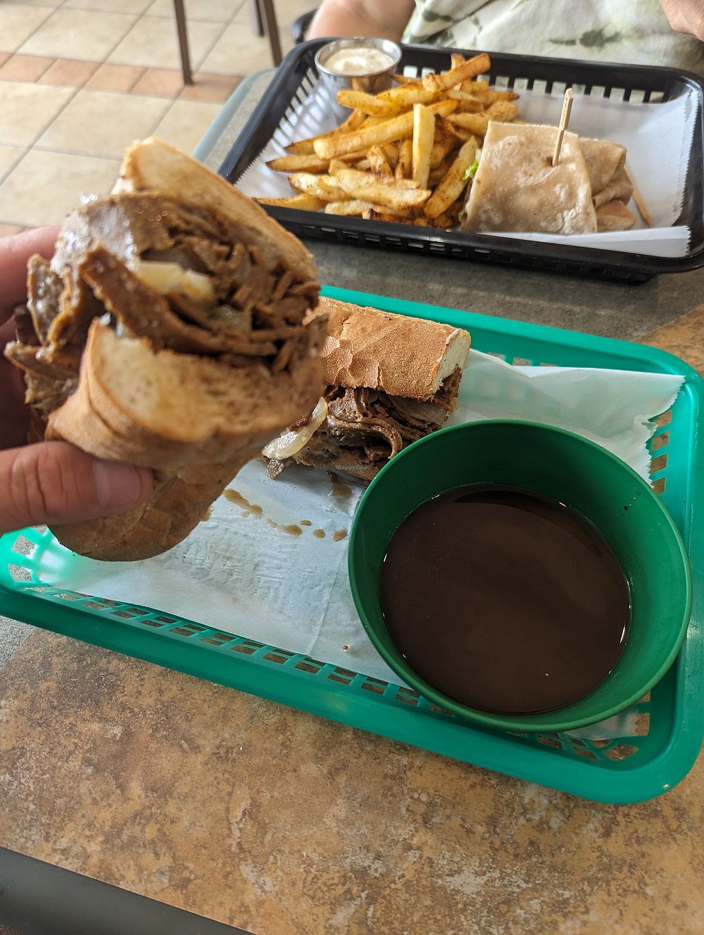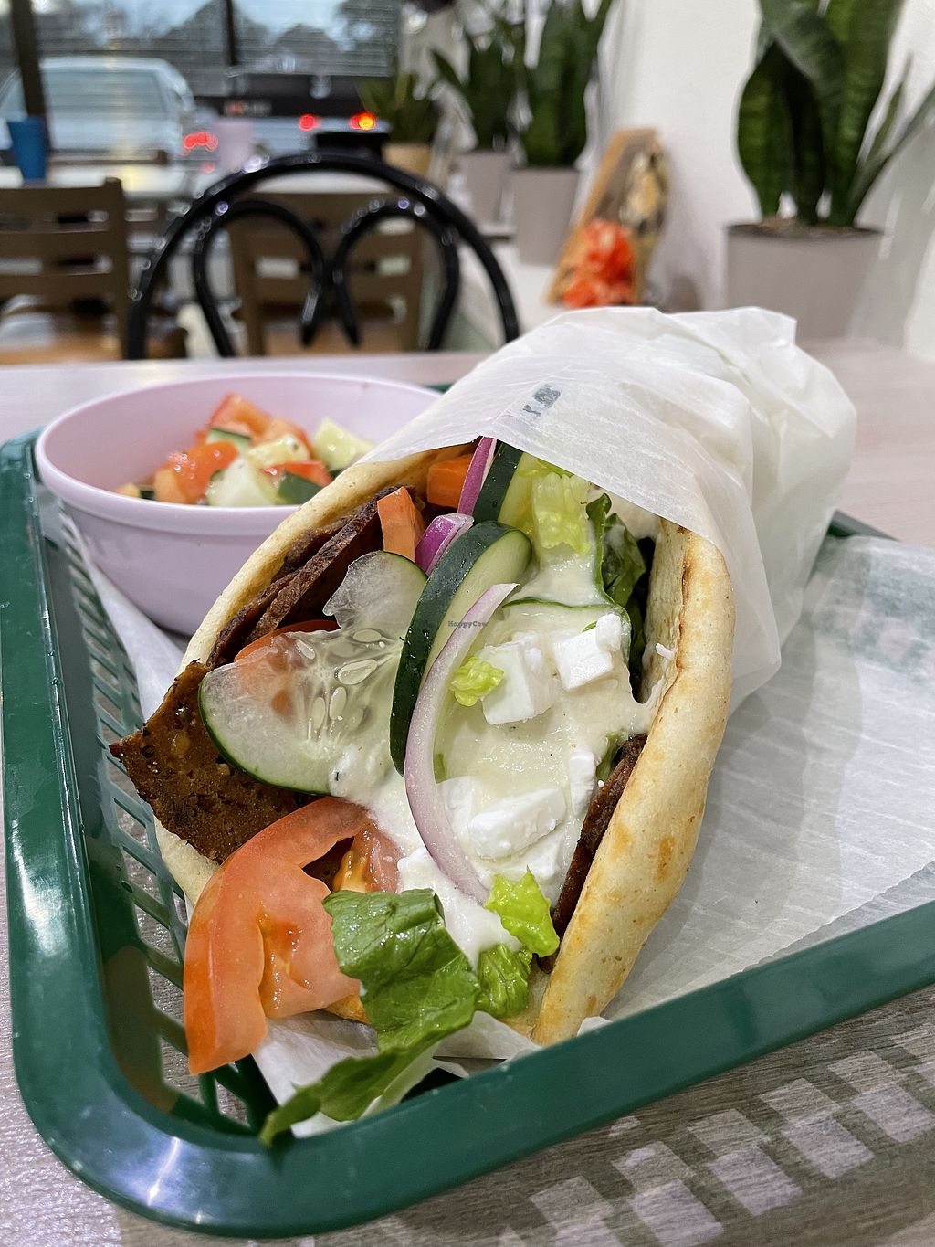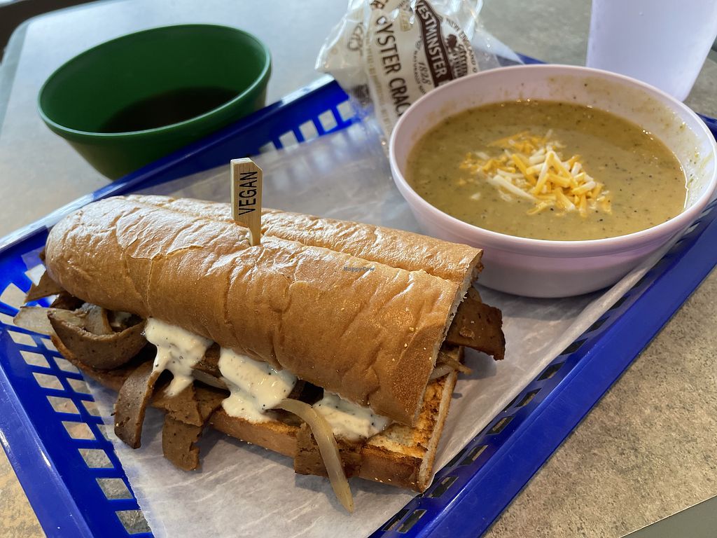 Gf Philly cheese steak with seasoned fries and tatziki dip