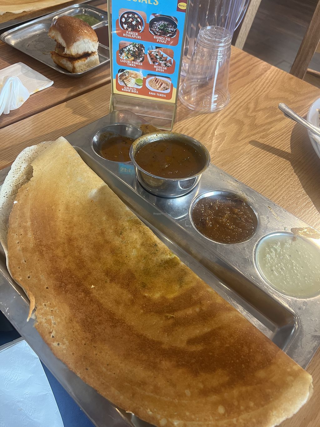 Traveling for work. Went here because of what I found on Happy Cow. Ordered vegan Masala Dosa. Exquisite flavors. Beautiful presentation. Friendly staff. Great service at 2pm. Peaceful ambiance w/gentle music overhead. If I lived here I would come everyday. Affordable with large portions.