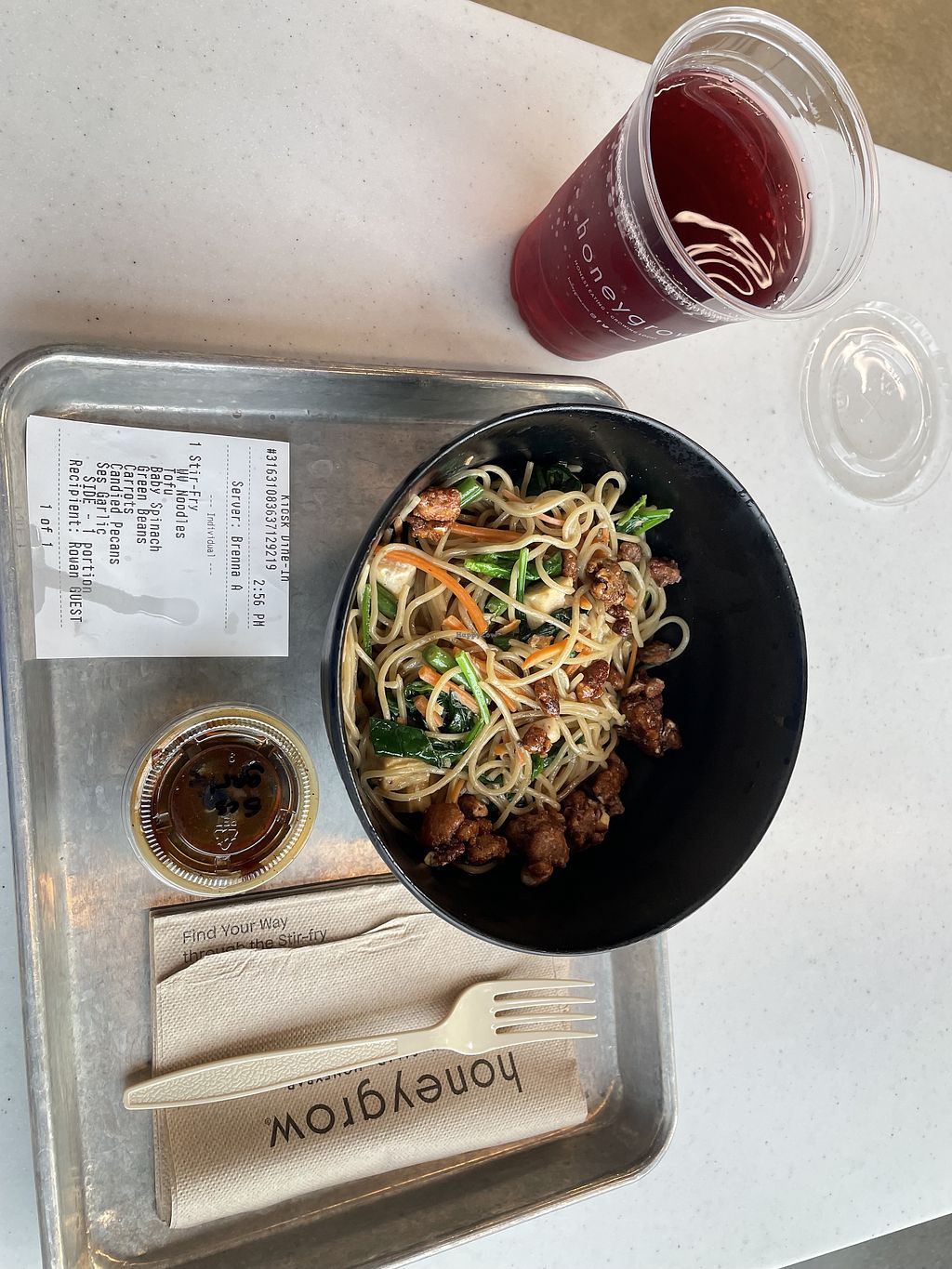 Read moreThe food itself tastes really good, but the amount of veggies/tofu you get in the stir-fries is lacking. It’s mostly the noodle/rice base, but that being said the sauces alone are worth going for. I wasn’t a fan of the house-made cherry drink, but they offer more typical drinks such as soda.