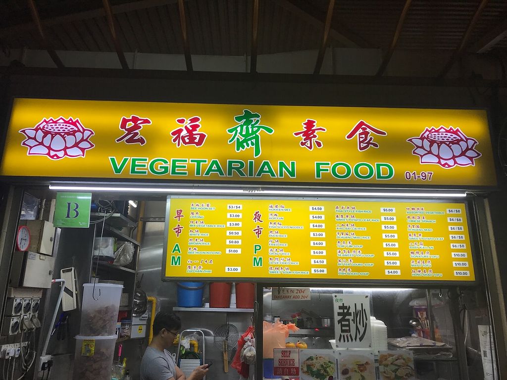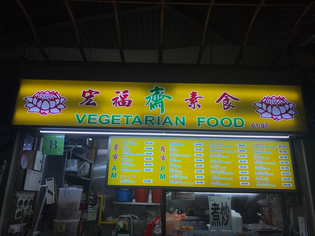 宏福素食 is a food stall in Boon Lay Place Food Village. Serves economic mee hoon from 5am-1pm, then later zi char from 5-8pm. Reported closed, Jul 2018.
