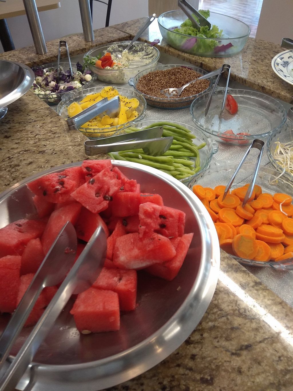 Sempre tem várias opções e podemos comer até explodir, adoro. Temperos deliciosos, bastante opções saudáveis, além das frutas frescas. As pessoas carnívoras que levo lá sempre gostam bastante da comida também.