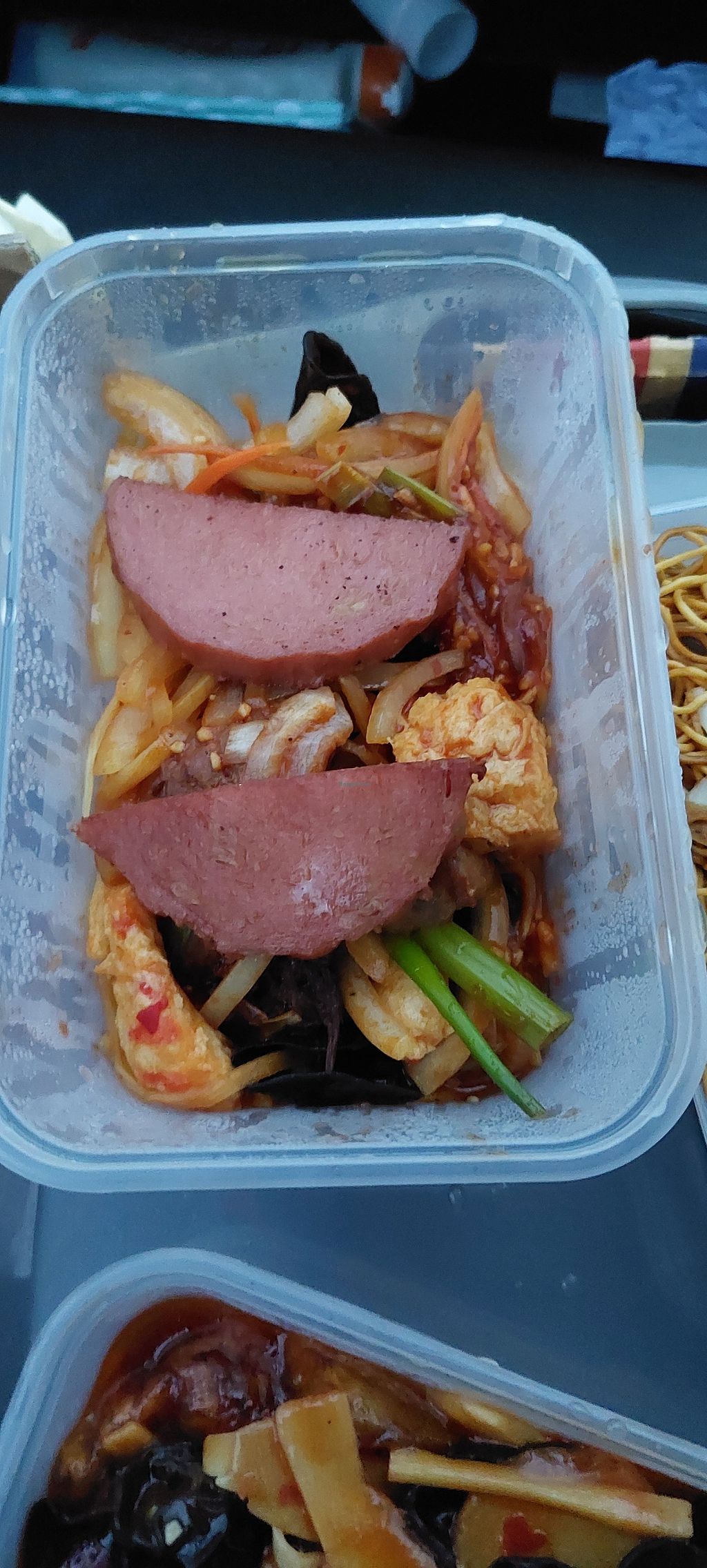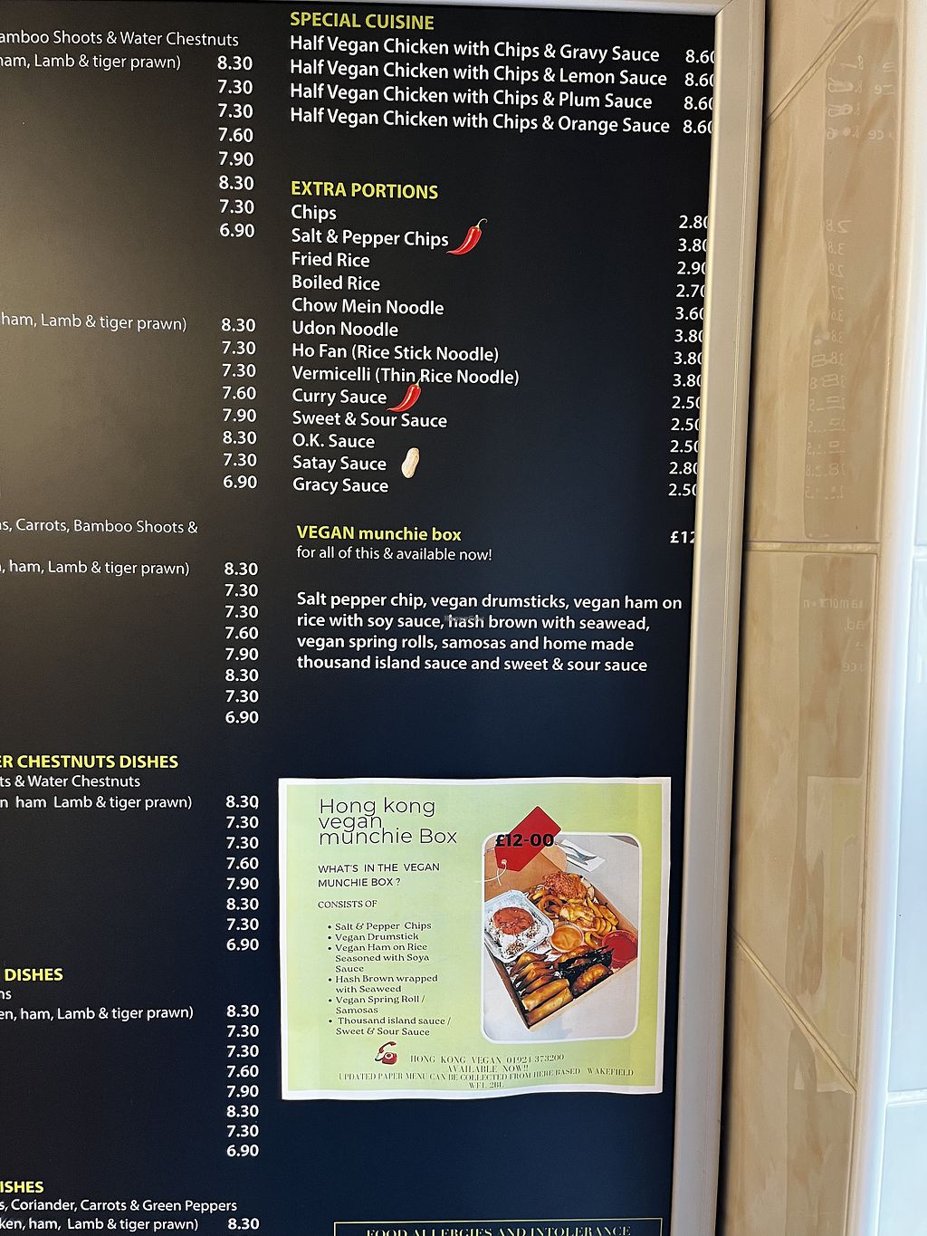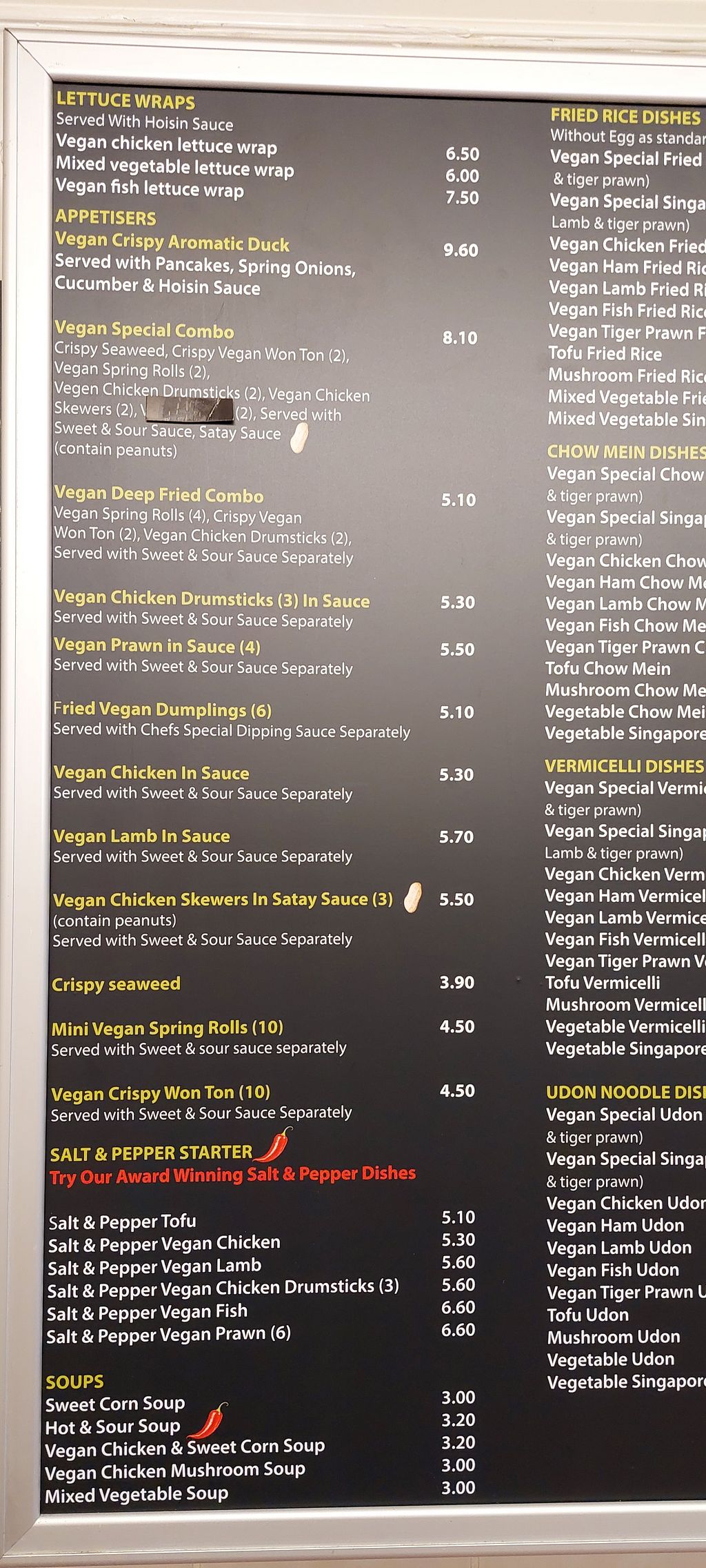 Curry sauce, chips, satay chicken skewers, Chow mein side, tofu satay,…