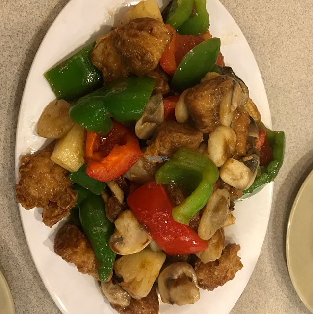 Separate veggie menu. We told them we had dairy allergies and they helped us order vegan. The two things we got were pretty bland. I kind of wished I brought my own siracha. I asked for sweet and sour and they brought a small plum sauce like dip that helped. Lots of bean curd dishes. Texture was good. Awesome that the option is here but won't be back for a while unless I bring my own spices.