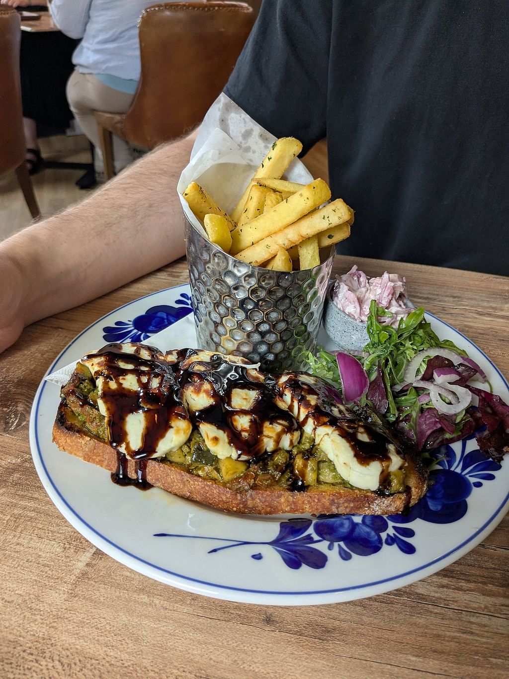 This is a conveniently located bar/breakfast spot/restaurant in a very nice building. We went in because it had clearly labelled vegan options. The food was fresh and tasty but the service was a bit slow and overworked. I ordered the organic beans on toast but received the bruschetta (which was fine to me since both were vegan).