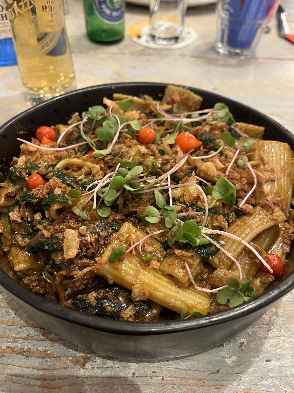 Loaded potatoes, curry and crispy tofu bao. All yummy