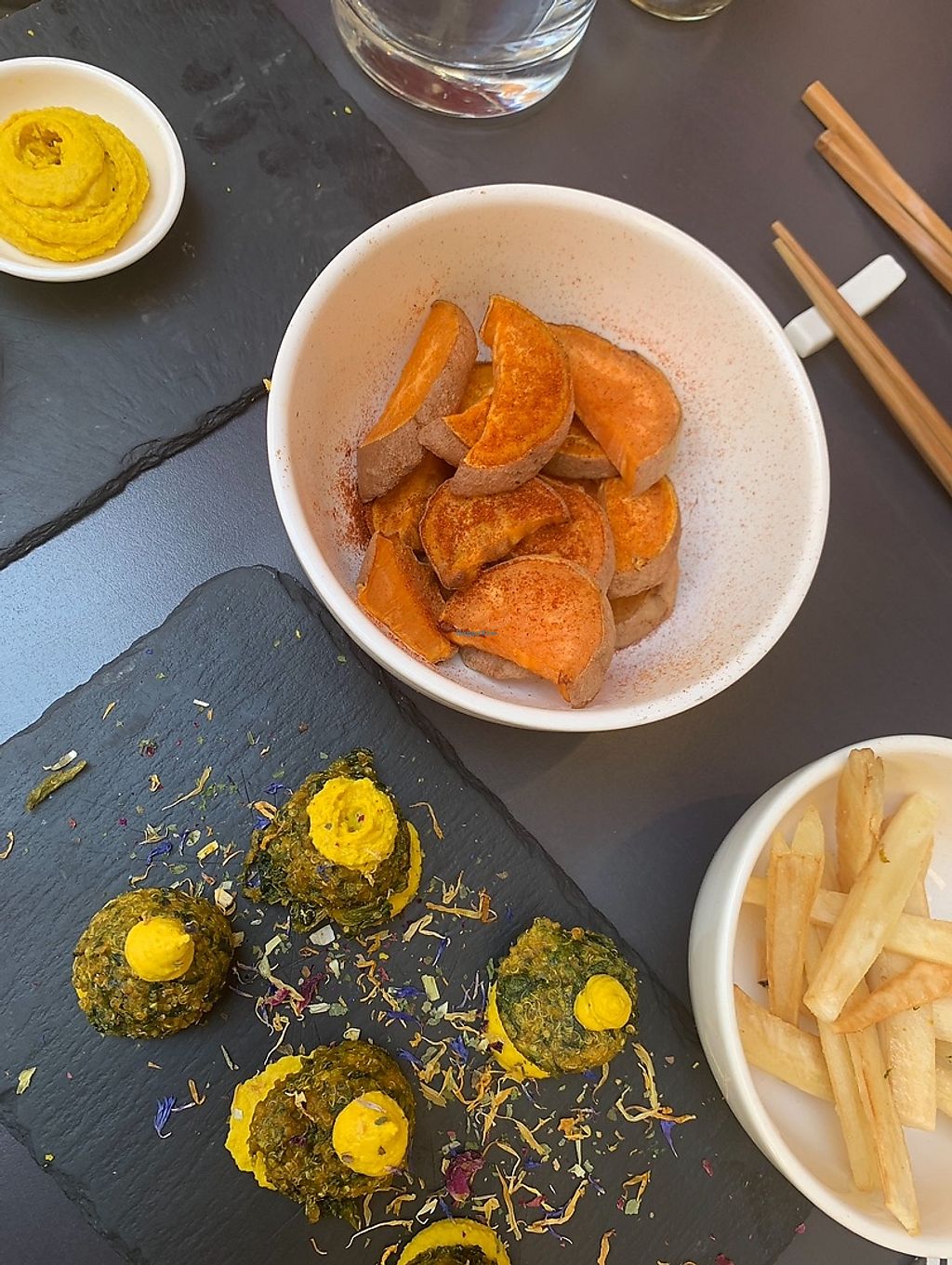 We had a very nice dinner here. The waitress was very helpful and explained all vegan options in detail. Vegan food is not marked so you need to ask. The can make non-vegan dishes vegan for you.