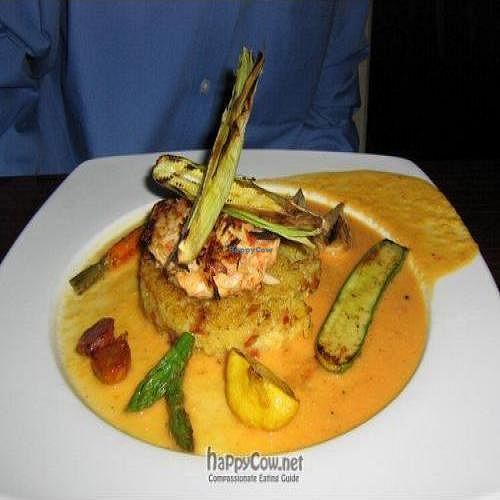 Fresh Hearts of Palm Cake: curried mixed squash, braised black lentils…