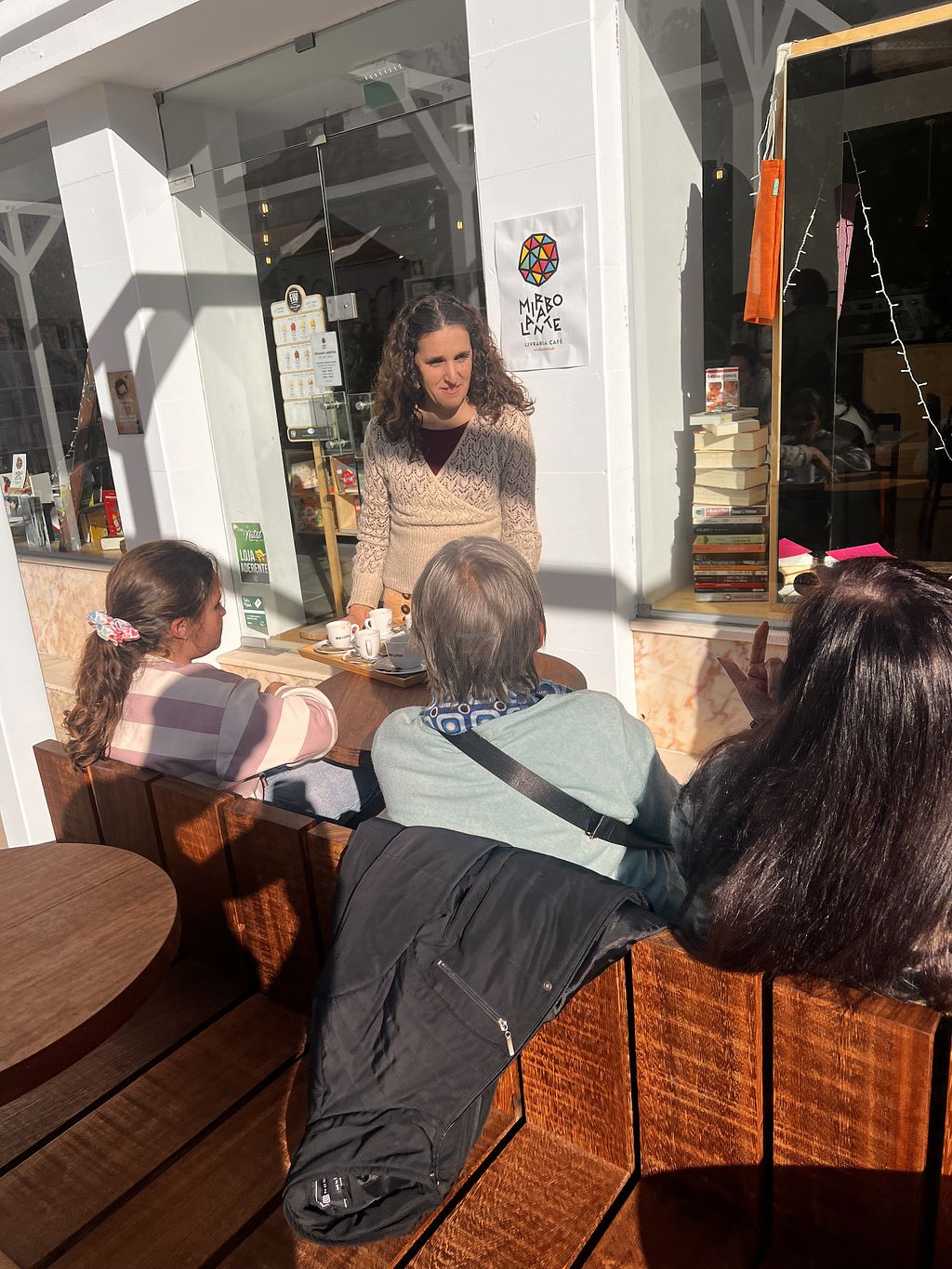 Lacto Western European Bookshop cafe offering cappuccino with oat milk and vegan brioche with almond paste. Staff speaks English. More