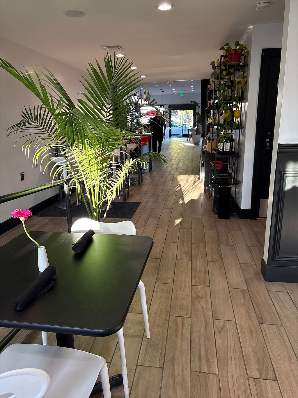 Modern and hip restaurant with very tasty vegan cheese pizza and gelato! Super nice staff and a nice outdoor spot in the back.