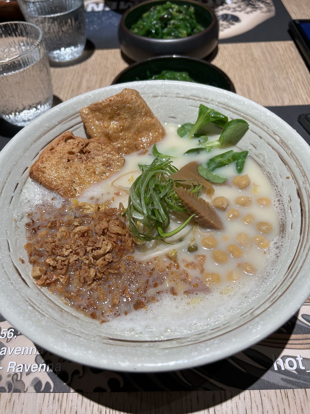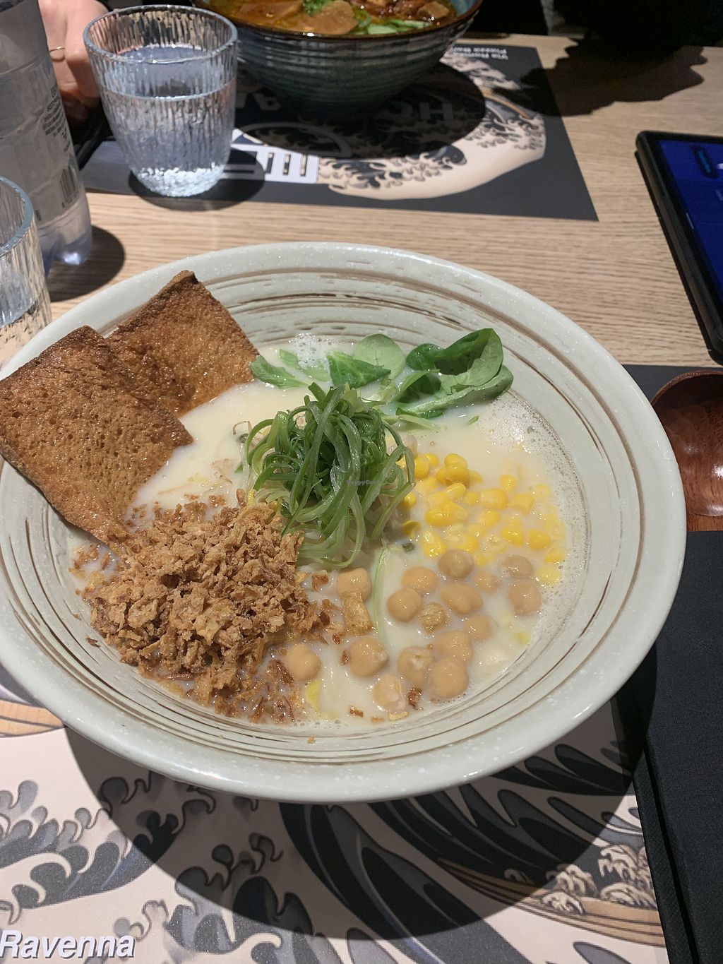 Ramen vegan con tofu fritto, ceci, cipolla fritta ( io ho fatto toglie…