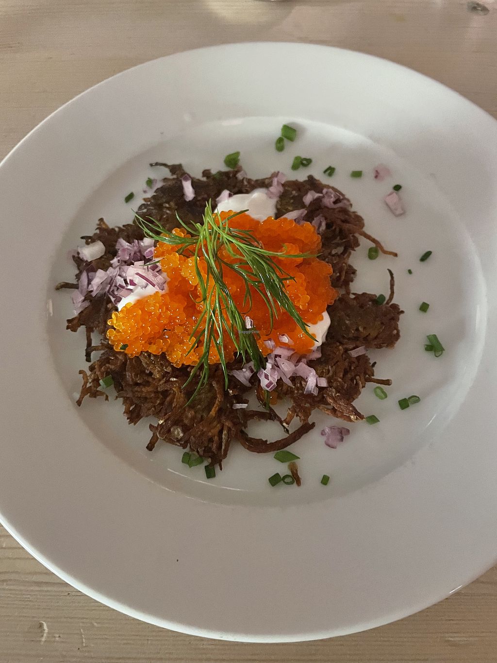 Swedish hash brown with vegan caviar and sour cream (loved this)
