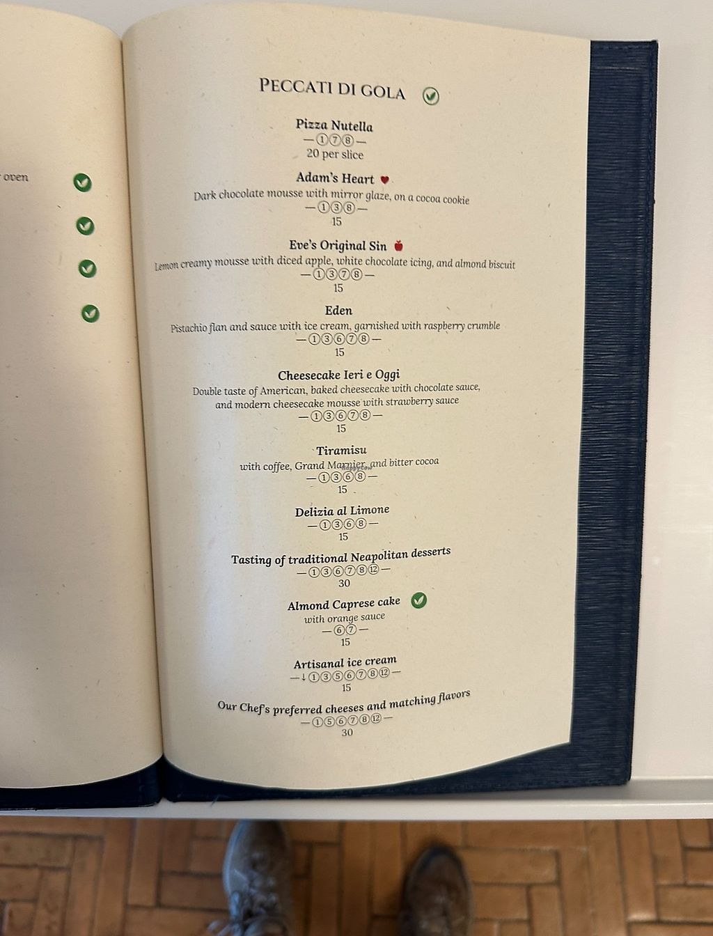 Es gab als vegan deklarierte Nudeln mit einer Pistaziencreme und ebenfalls einen Kuchen der sehr lecker war. Die Bedienung war sehr informiert & es gab noch eine Vorspeise aufs Haus die vegan gemacht werden konnte. Das Restaurant ist etwas teurer, für die Nudeln hat man 35€ gezahlt und insgesamt pro Person so 50€. Die Aussicht ist allerdings sehr schön. Für den Außenbereich zahlt man mehr als für den innenbereich, die Infos dazu waren aber online einzusehen.