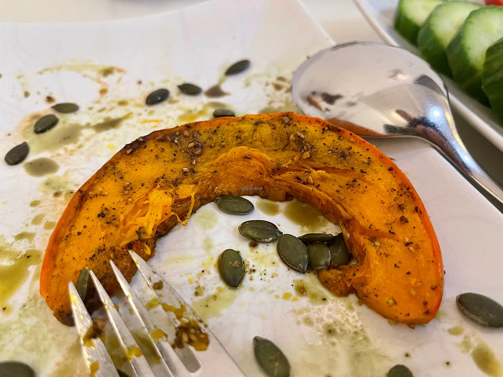 - Half baked avocado with some weird pink stuff shaped into the avo hole, which was described as vegan lamb. I can't stand baked avocado. I thought the pink stuff was edible but my partner's wasn't cooked as much so was more a pate texture whereas mine was chewy.