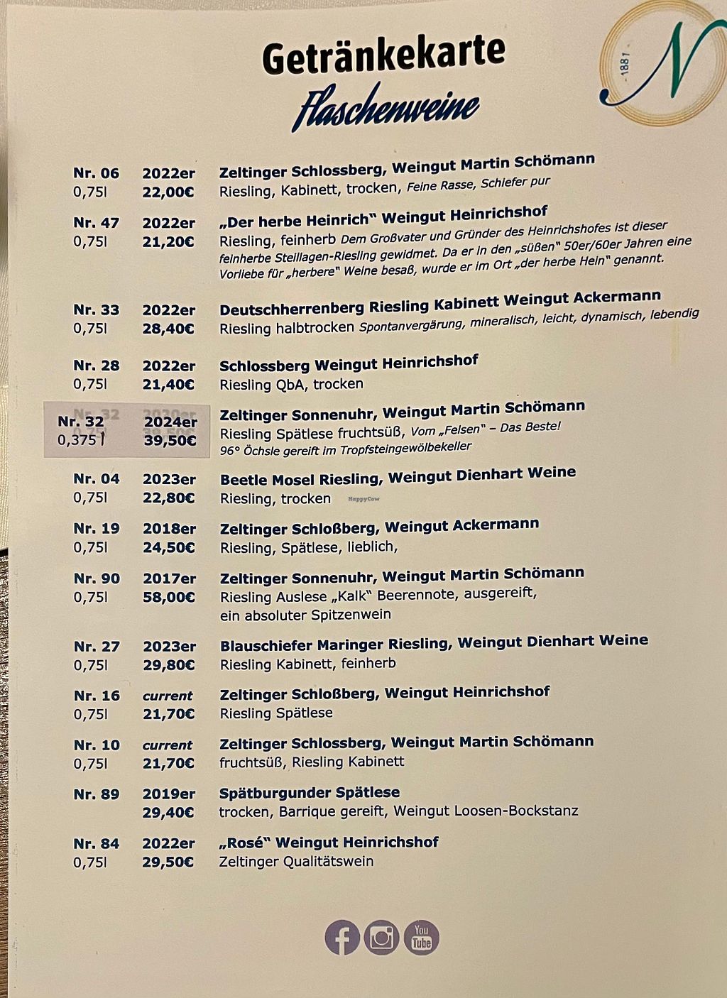 The hotel is located in the “nicer” area of the Mosel region. Went there three times: once to the main restaurant and twice as a hotel guest (3 course dinner breakfast buffet). Both dinner places are good but I prefer the a la carte menu. Definitely worth a visit!
