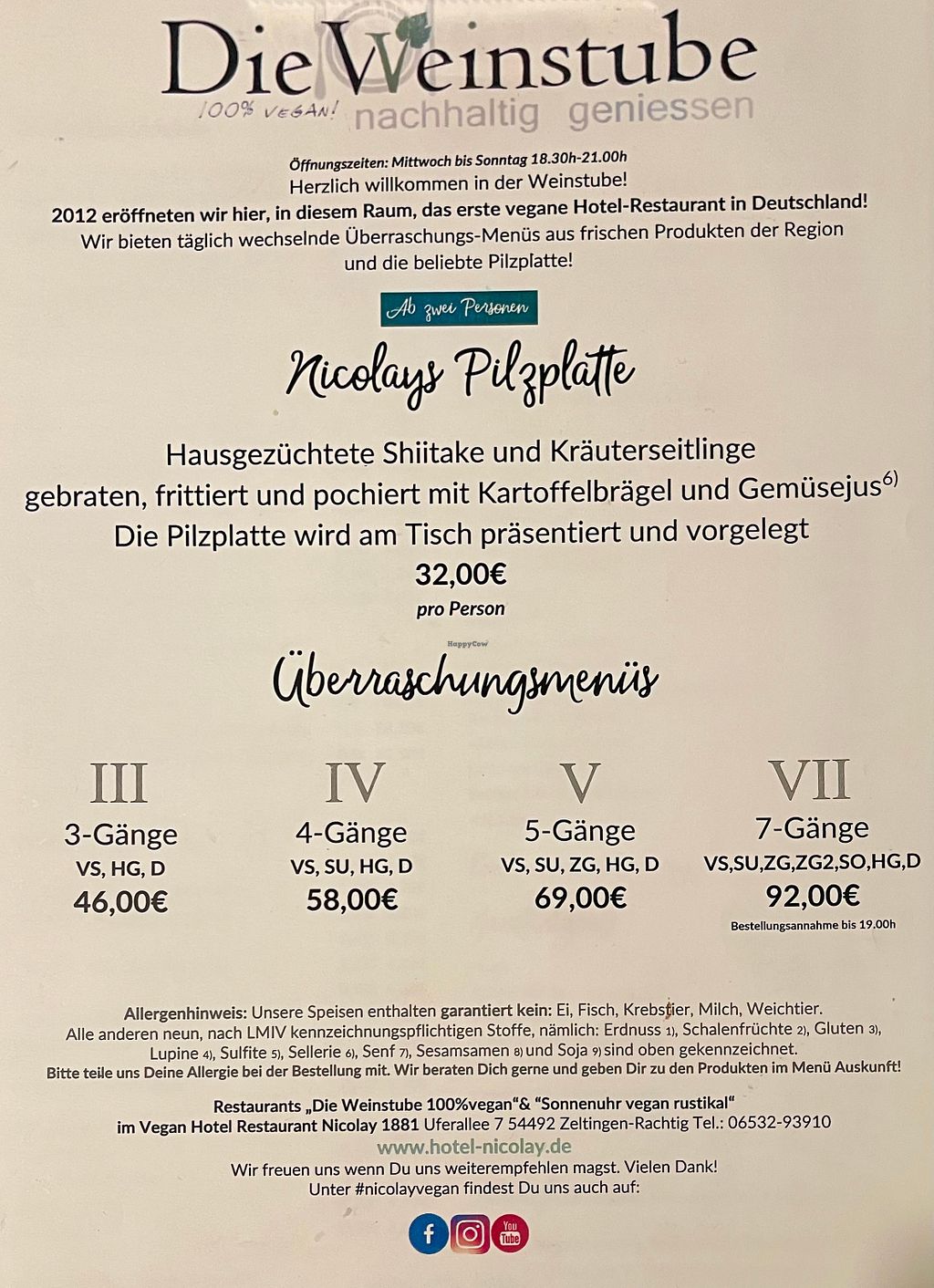 Delicious food, all vegan!!! Very friendly staff and the food is really good!! We took breakfast (buffet!) and 3 course dinner. As a vegan this is heaven!