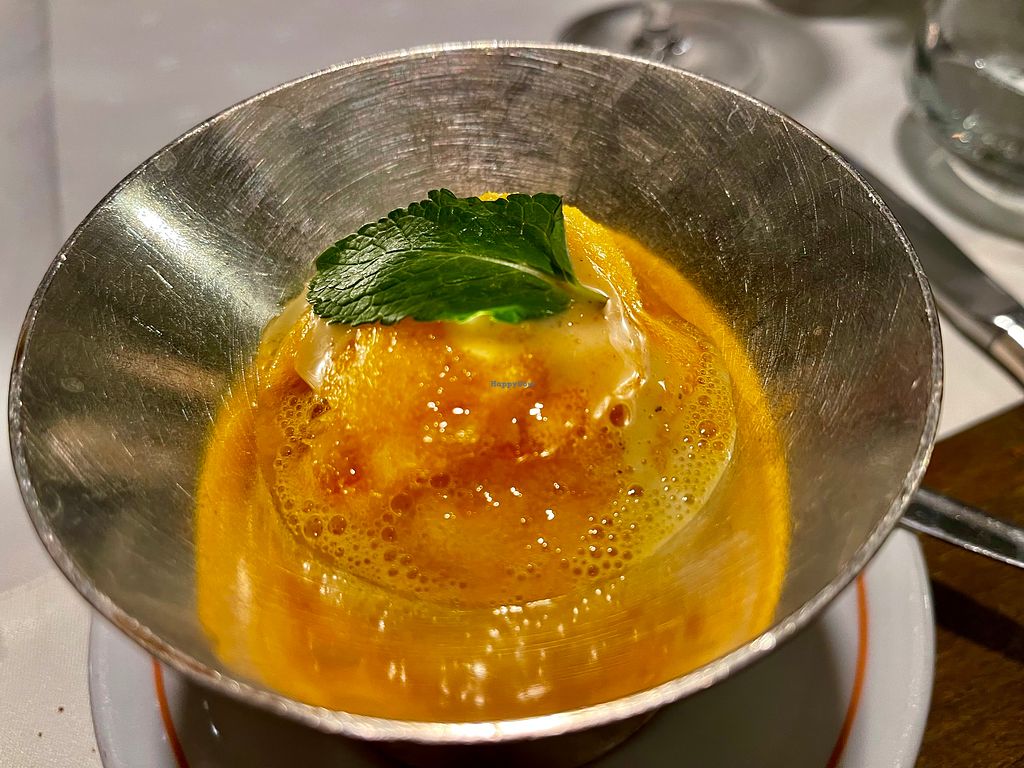 Soup: Orange and tomato consommé. This weirdly smelt like mulled wine (not helped that it was served in a glass with dried orange peel). I thought it was ok but I don't think the flavours really go together. My partner thought it tasted like a combination of heinz tomato soup and mulled wine. They couldn't eat it and found it thoroughly disgusting.