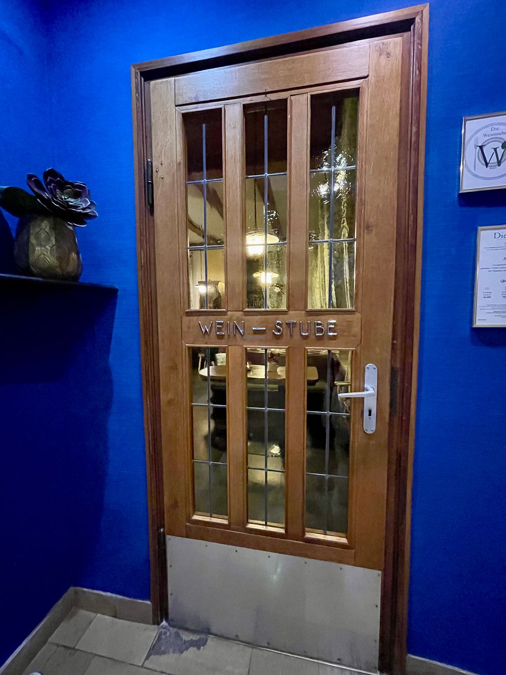 We also wanted to try dinner at Die Weinstube on another night (just the room next to this one, but more restaurant feel with table cloths etc), but that was fully booked every night with hotel guests who have half board. You can also have the 3course menu of the Weinstube in the Sonnenuhr room, but we declined.