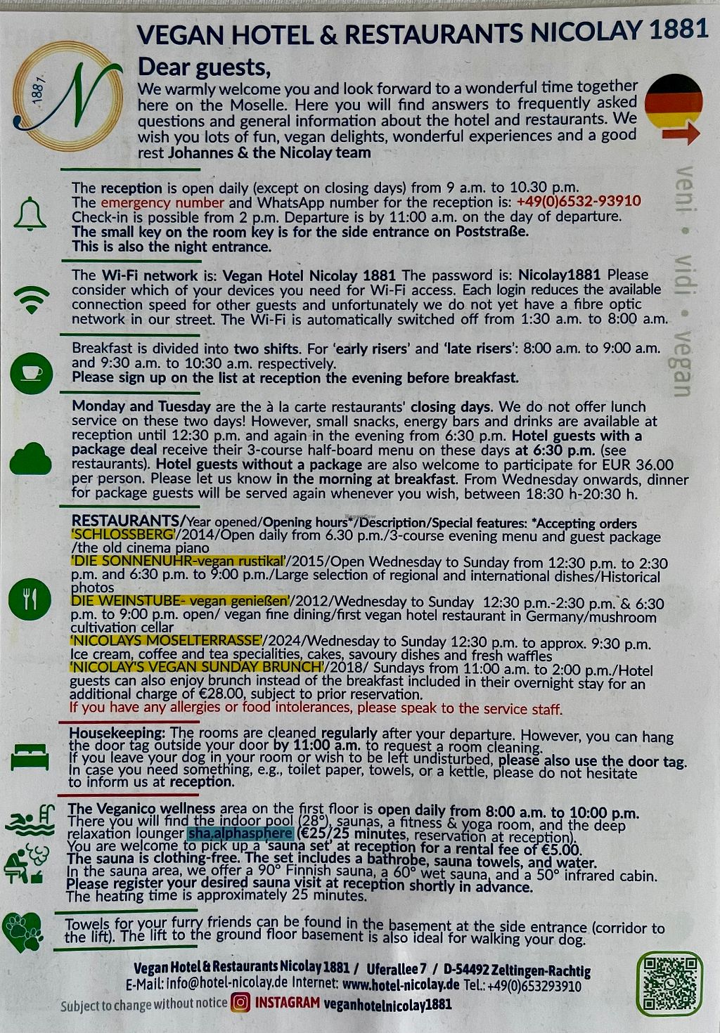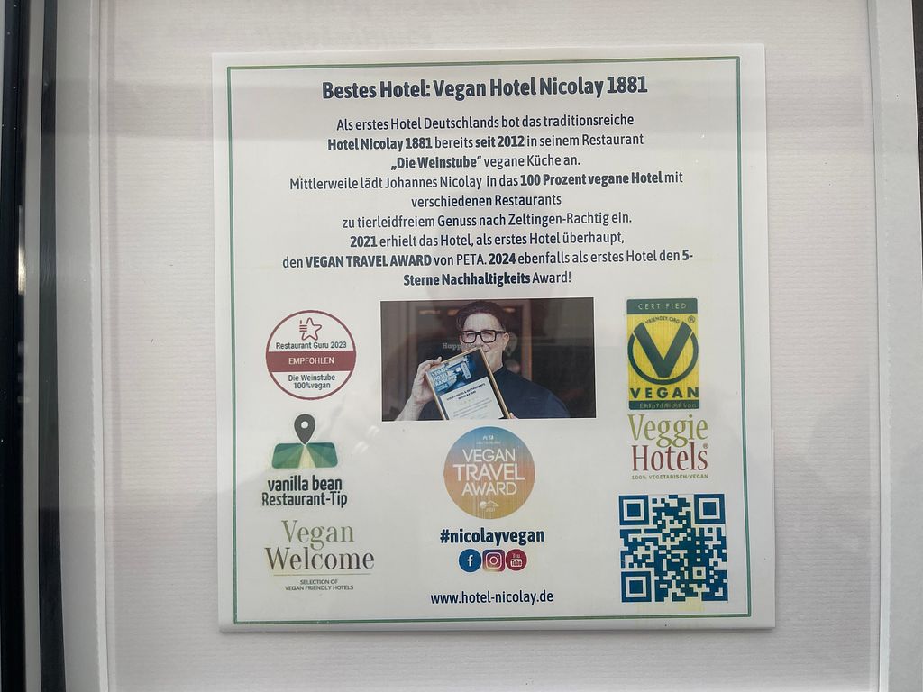 Interessantes Konzept und an dem Ort ein echtes Statement. Rein veganes Hotel mit 4 rein veganen Restaurants. Direkt an der Mosel. Schwimmbad und Sauna vorhanden. Halbpension mit Frühstücks-Buffet und Abendessen. Danke für das Angebot 🌱