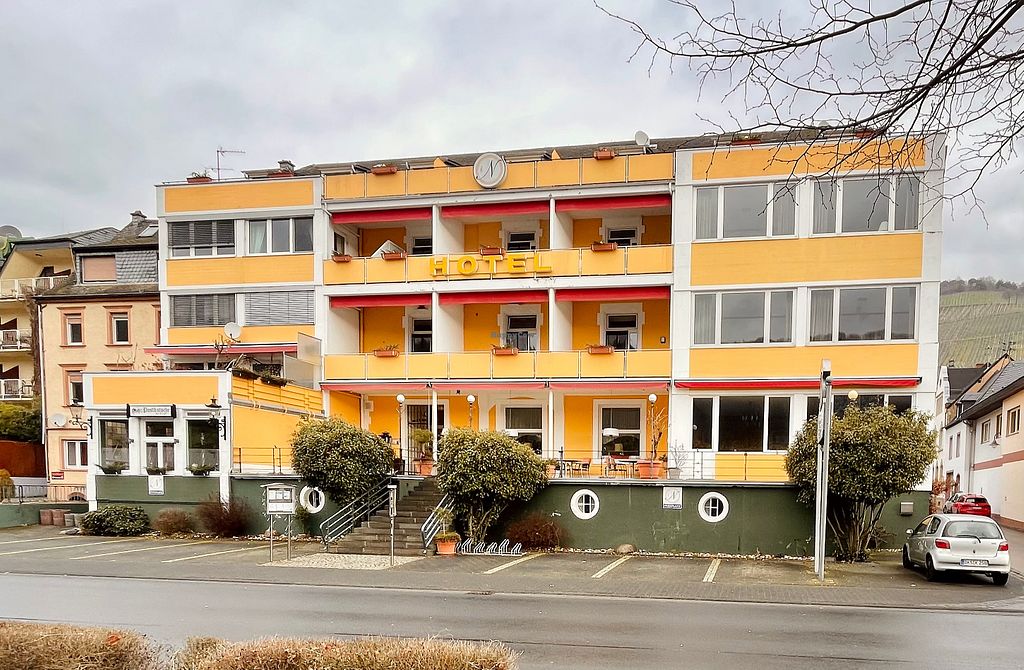 Die Lage des Hotels ist super: in erster Reihe an der Mosel und in der Nähe von Traben-Trarbach und Bernkastel-Kues. Es gab Parkplätze und eine Bushaltestelle direkt vor dem Hotel.