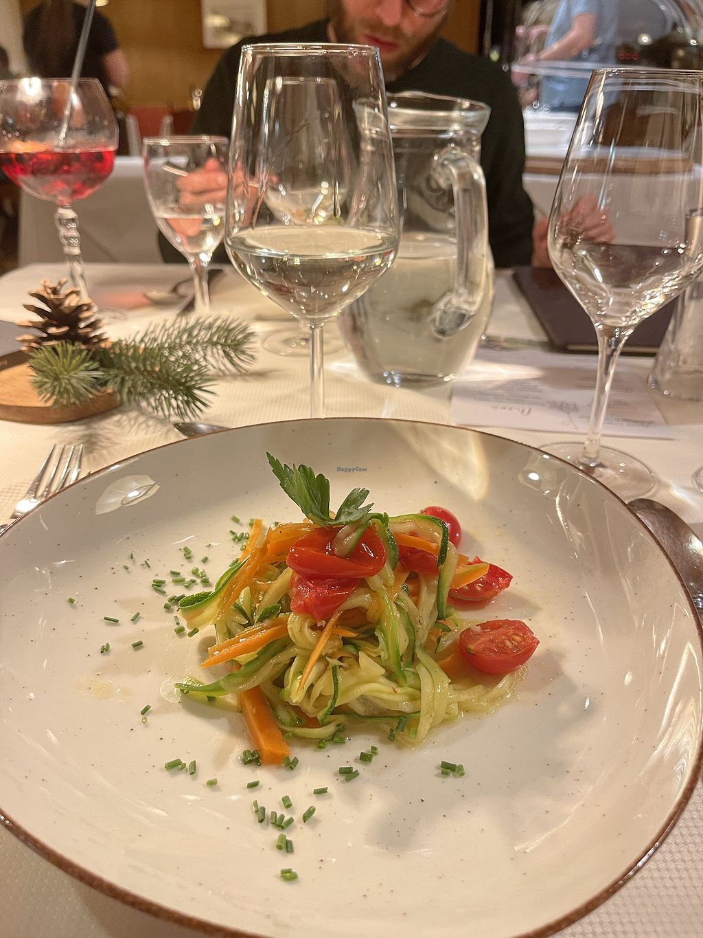 We have been coming to this hotel for many years and this was our first time here as a consistent vegan. We asked before arrival whether a vegan menu would be possible in principle and we were assured that they will try to accommodate all our wishes. And we were not disappointed. In the morning there is a rich breakfast buffet with vegan bread and rolls, homemade jam, cereals, oat milk, vegan croissants and fruit. In the evening, from Monday to Saturday, there is a three-course menu, and on Sundays there are four courses. It's especially great that we didn't just get the "standard menu" without the animal parts. A separate vegan menu was created especially for us. For example, there was pizza with grilled vegetables, pasta with tomato sauce, grilled tofu or stuffed peppers. For dessert there was fresh fruit or sorbets. We also found it great that everyone in the hotel team was aware that we live vegan and so we never had to point out anything. An absolute recommendation in the Pustertal and we will continue to be loyal guests.