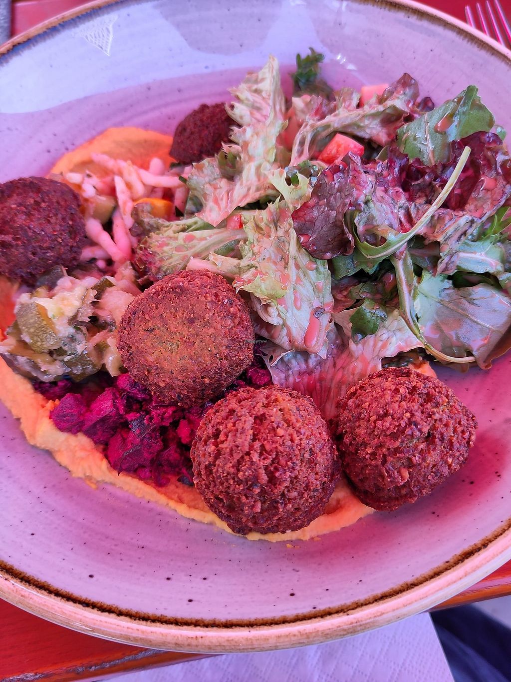 Trotz "Siesta" wurde uns eine reichhaltige Bowl mit Falafel zubereitet. Ideal für Radwanderer. (Zumindest sind in der Zeit einige eingekehrt)
