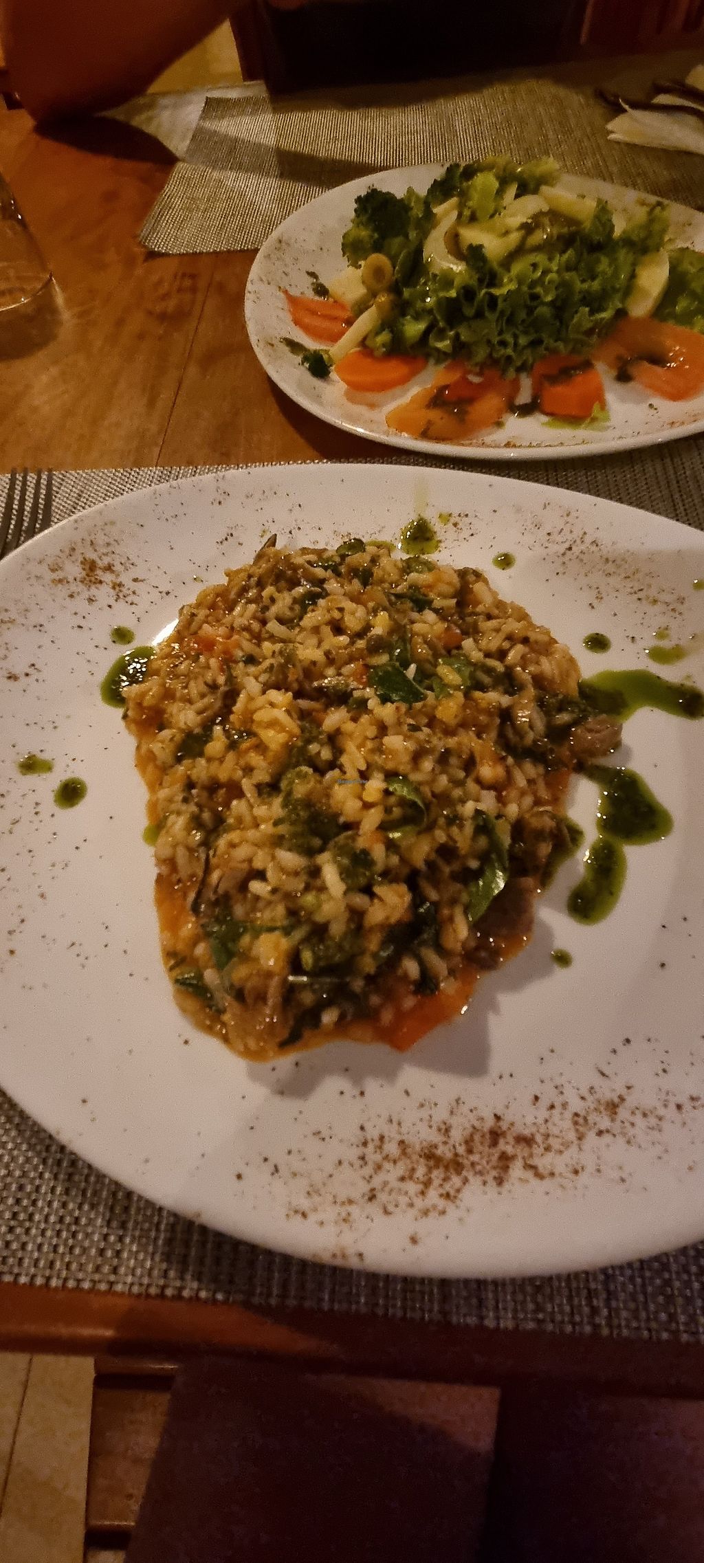 Delicious mushroom burger, great risotto, OK pizza. Beautiful views and caring staff, they really try to adapt to your needs despite the limited vegan menu. Recommended.