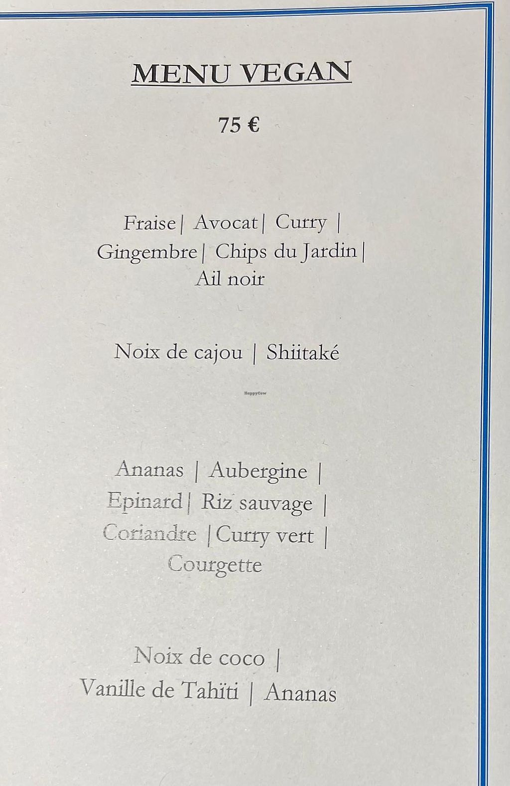 We thoroughly enjoyed the amazing vegan degustation menu. Inventive combinations, surprising textures and delicious flavors that showcase the varied culinary backgrounds of the kitchen team (Brazilian, Mediterranean, Asian). The restaurant is upstairs in the Hotel Sainte-Victoire and has a striking view of Mont Sainte-Victoire and the valley in Vauvenargues. Perfect for a special occasion.