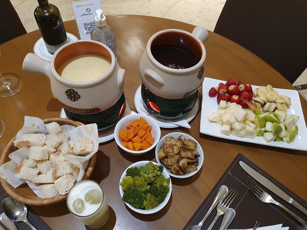 Couvert (pão preto com pastas de grão de bico, de inhame, caponata e d…
