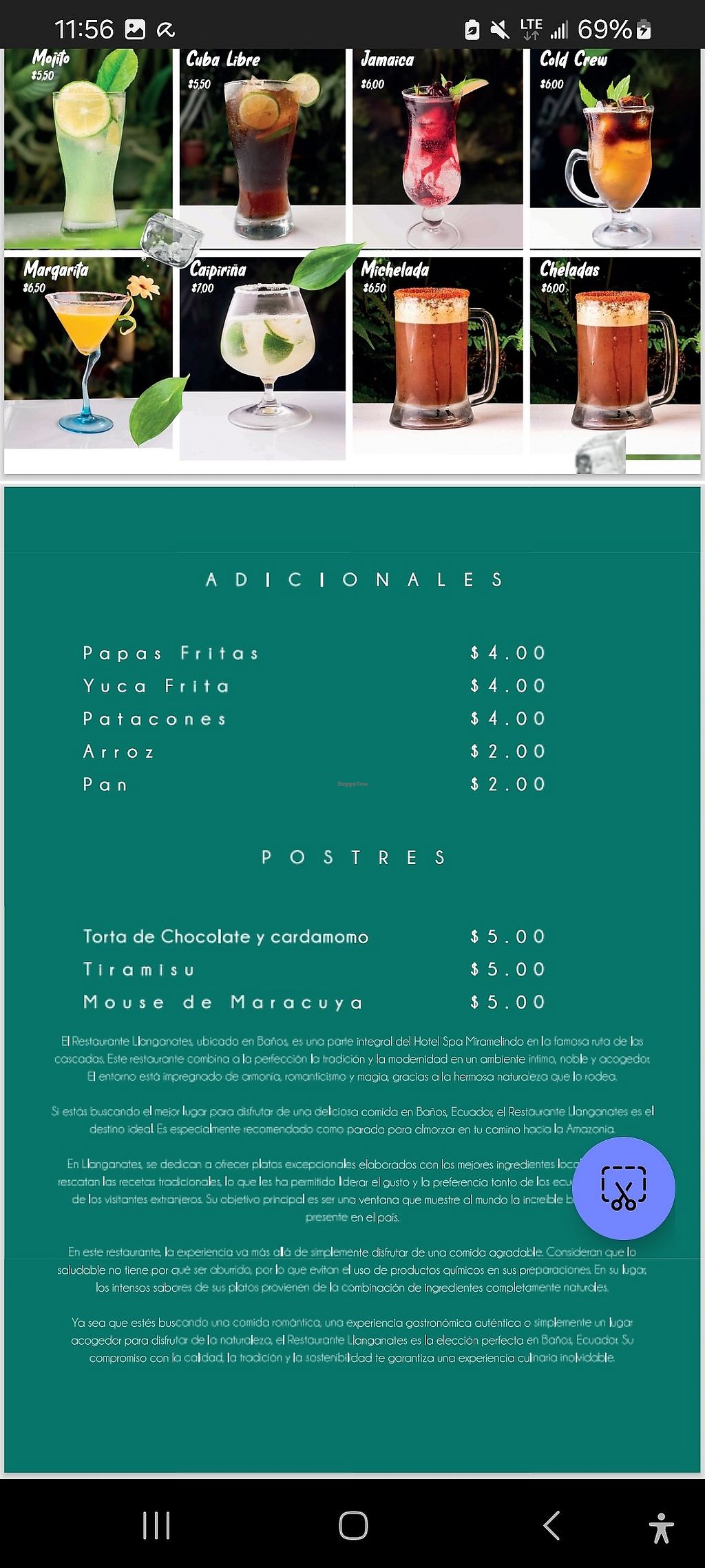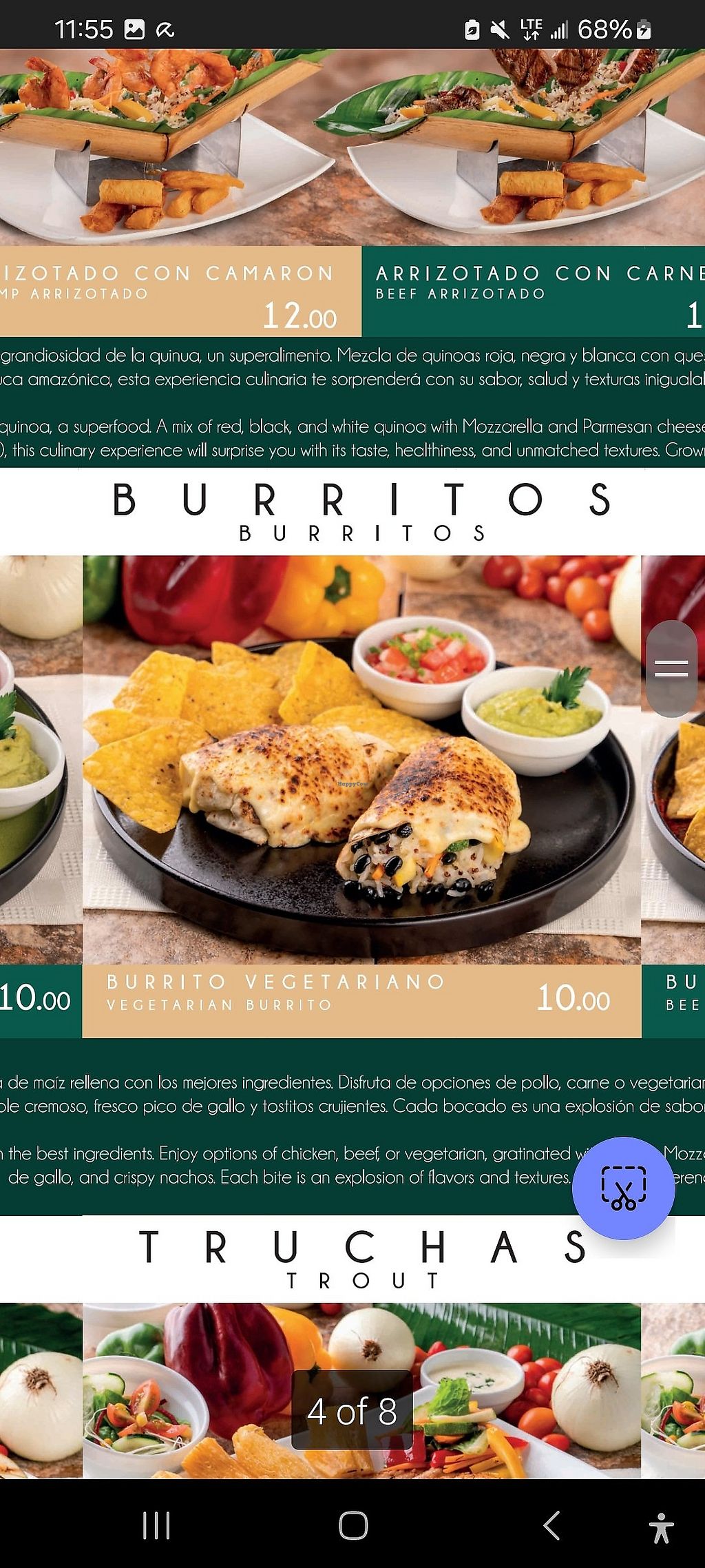 Serves meat, vegan options available. Hotel restaurant with vegan options, including burritos, arrizotado, and more. Some dishes need to be adapted to be vegan. Open Mon-Sun 10:00am-9:00pm.