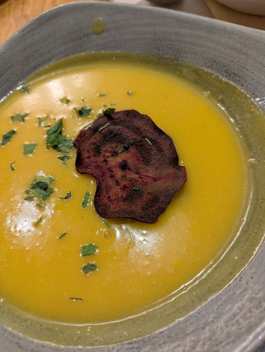 für diese leckere, vegane Option!! Vegane Kürbiscremesuppe gab es auch auf der Karte! Nettes Lokal! Guter Service!