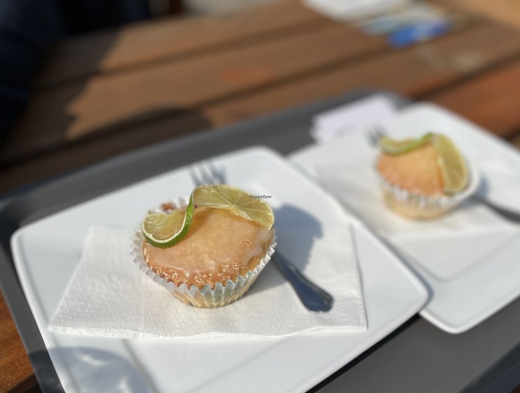 Read moreDas Sorbet beschränkt sich leider nur auf eine Kugel und der Muffin war auch relativ klein, aber es hat beides sehr gut geschmeckt. Für den Kaffee wird auch Pflanzenmilch angeboten.