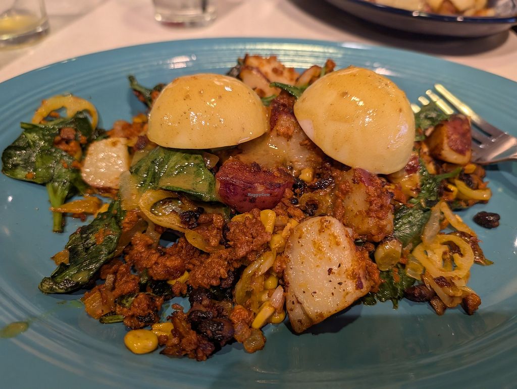 Vegan diablo benedict with vegan chorizo