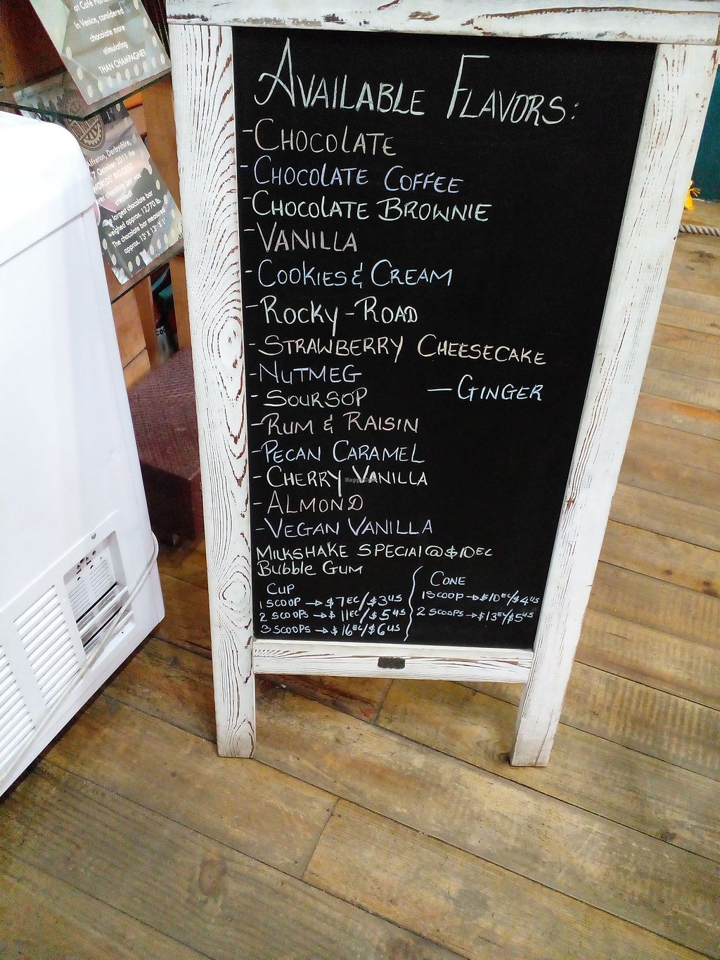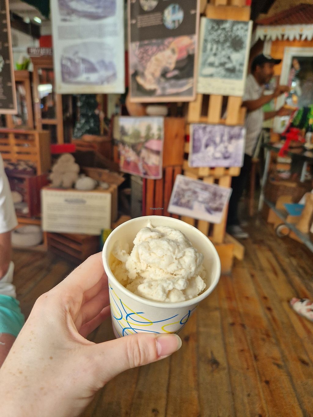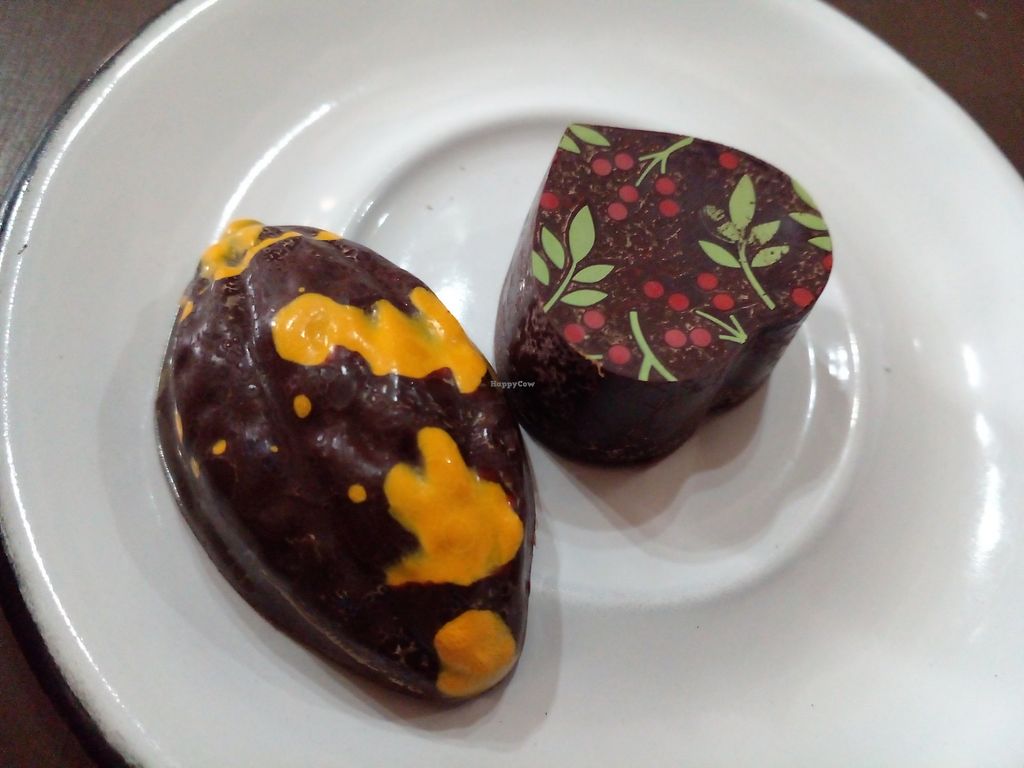 We went to House of Chocolate to pick up some dark chocolate but were pleased to find that in the baked goods section, they offered a vegan chocolate cake, 3 types of delicious bonbons (guava, nutmeg, and caramel which actually tasted like passion fruit). They also have 3 flavors of vegan ice cream (vanilla, chocolate, and nutmeg) although this was the only thing that wasn't that great -- the flavor was nice, but it was more like shaved ice. They also have vegan hot chocolate too