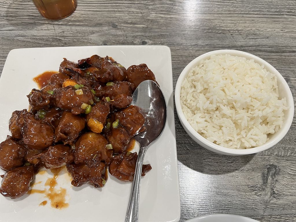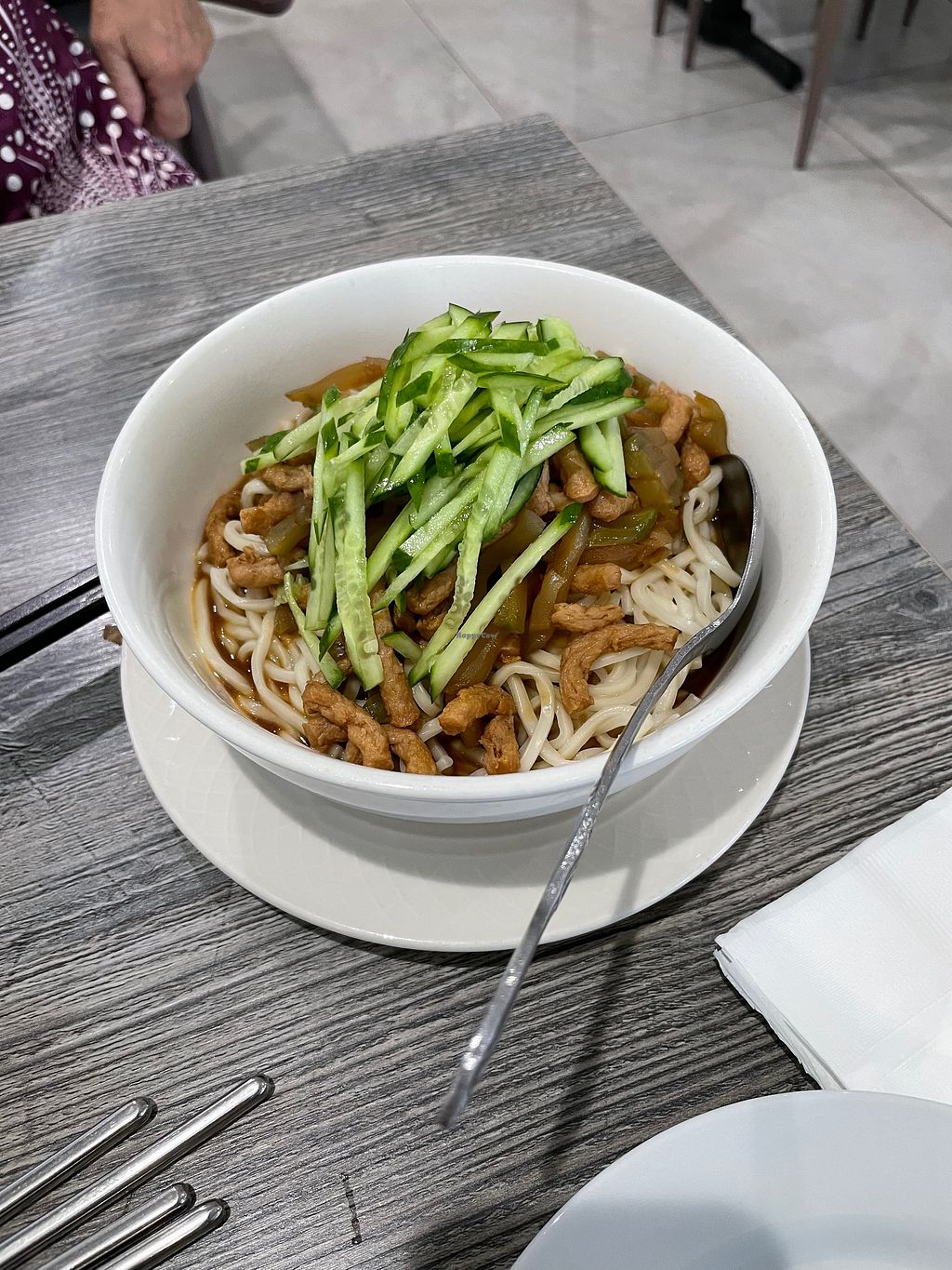 We like this kind of Vegan Chinese food and there is none (no restaurant serves this kind of food) near where we live. My brother lives near this restaurant and he likes it too although he is not a vegetarian. We came to visit him and had lunch on the outside table, due to Covid.