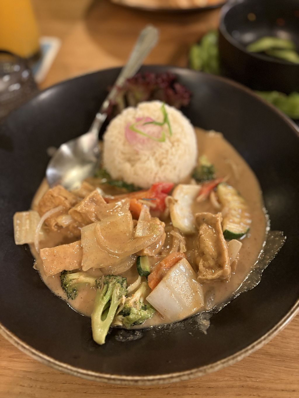 Serves meat, vegan options available. Eatery with vegan bowls, sushi rolls, and curry. Open Mon-Thu 11:00-22:00, Fri-Sat 11:00-23:00, Sun 11:00-22:00.