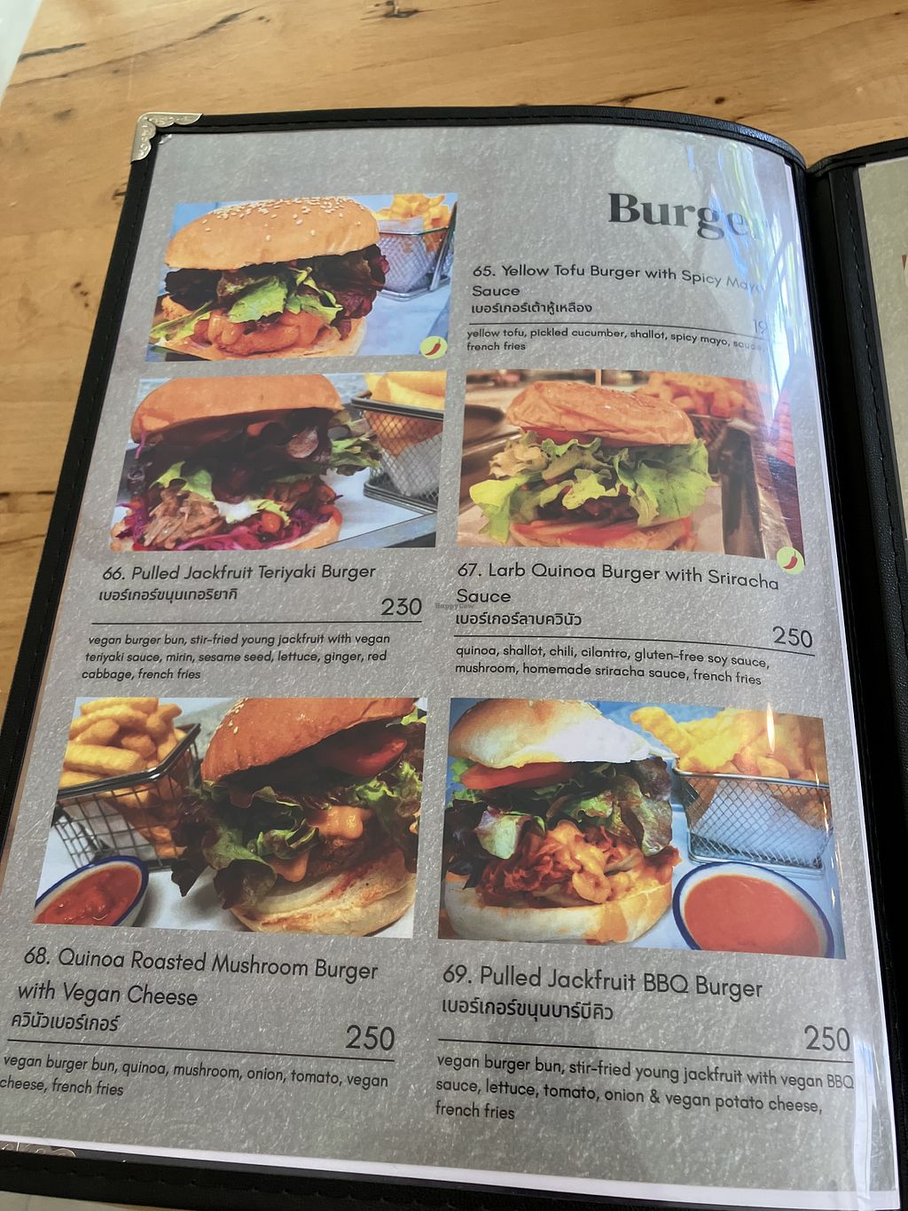 We went to this lovely place several times during our stay in Hua Hin and tried several dishes. Everything was well cooked using fresh and delicious ingredients and seasoning. We also really enjoyed the cakes especially the carrot cake. Great choice of smoothies and juices as well as wine. Portion sizes were massive! Also well priced for what you get. Recommend to vegans and non vegans