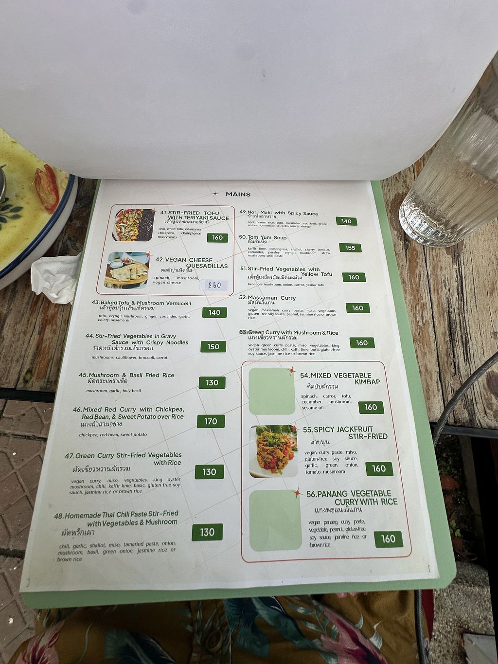 Vegan pumpkin carbonara with coconut bacon, 190 baht