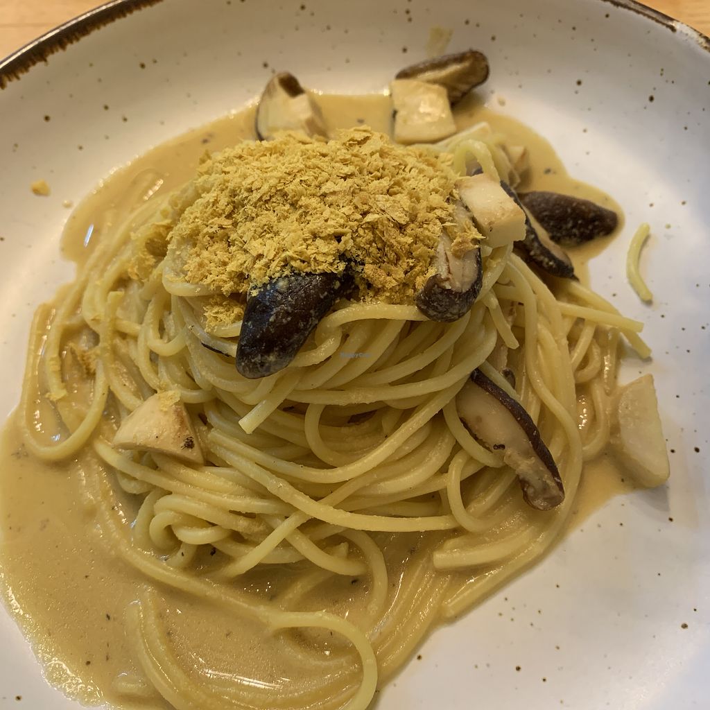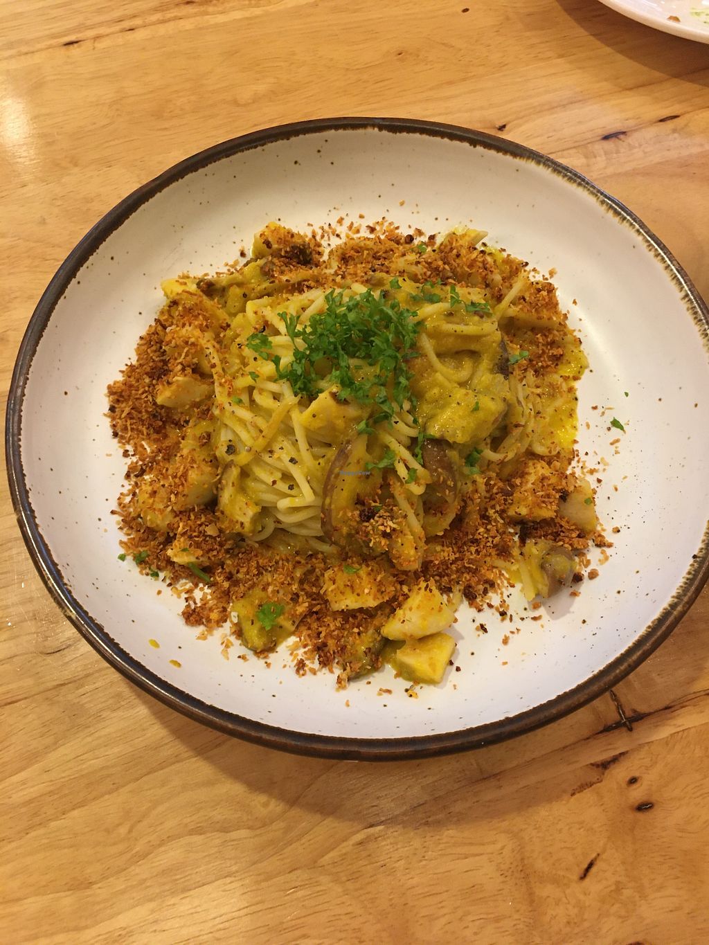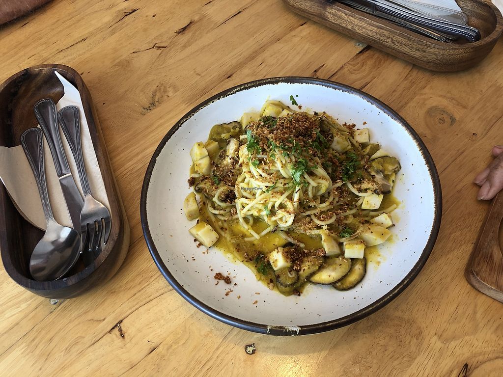 Pumpkin sauce pasta with coconut bacon