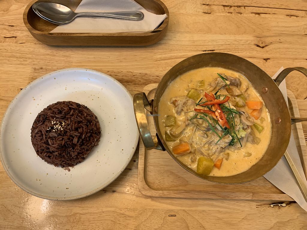 Spicy peanut dip over sweet potato and rice - sweet potato here is yam…